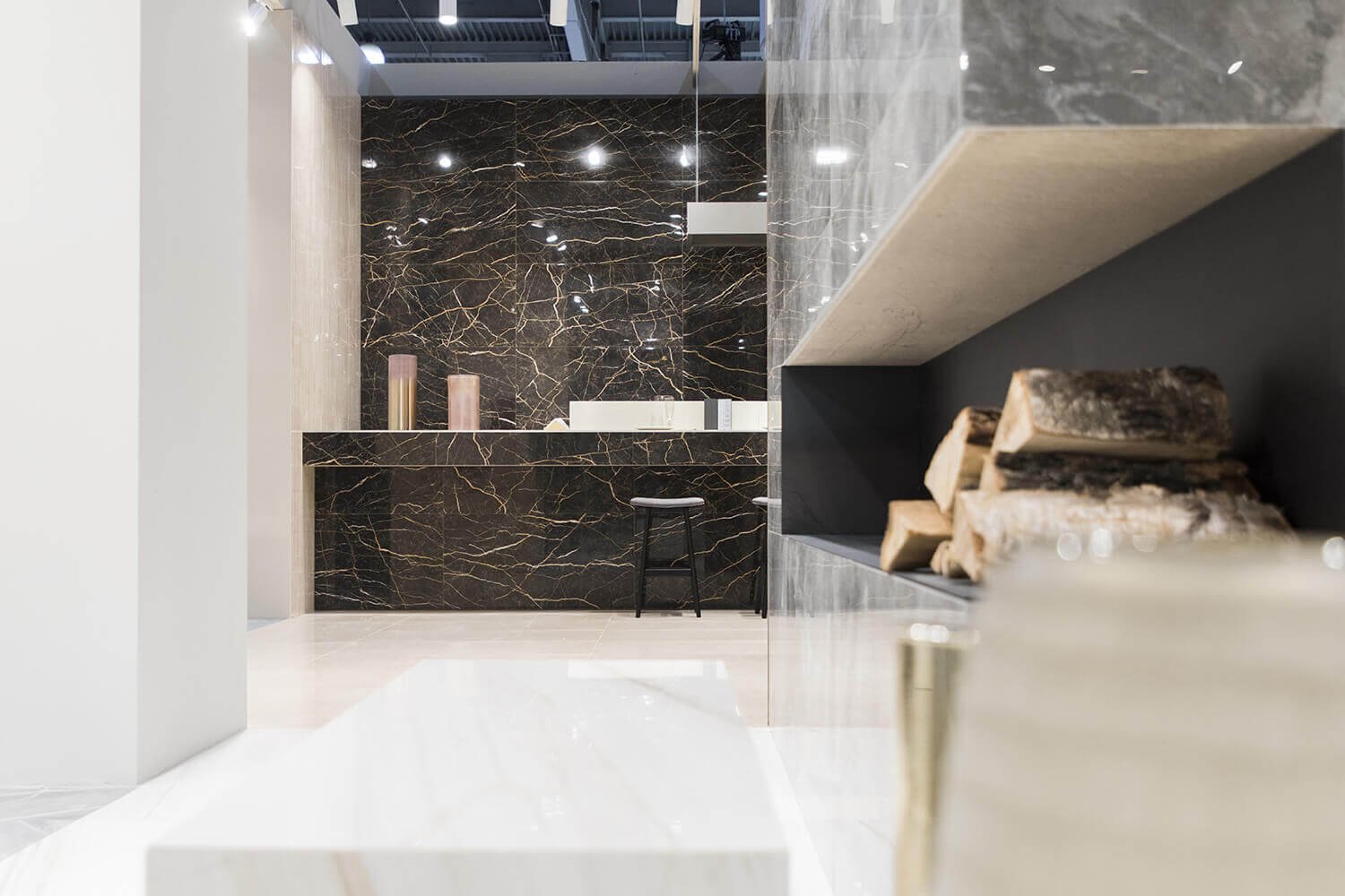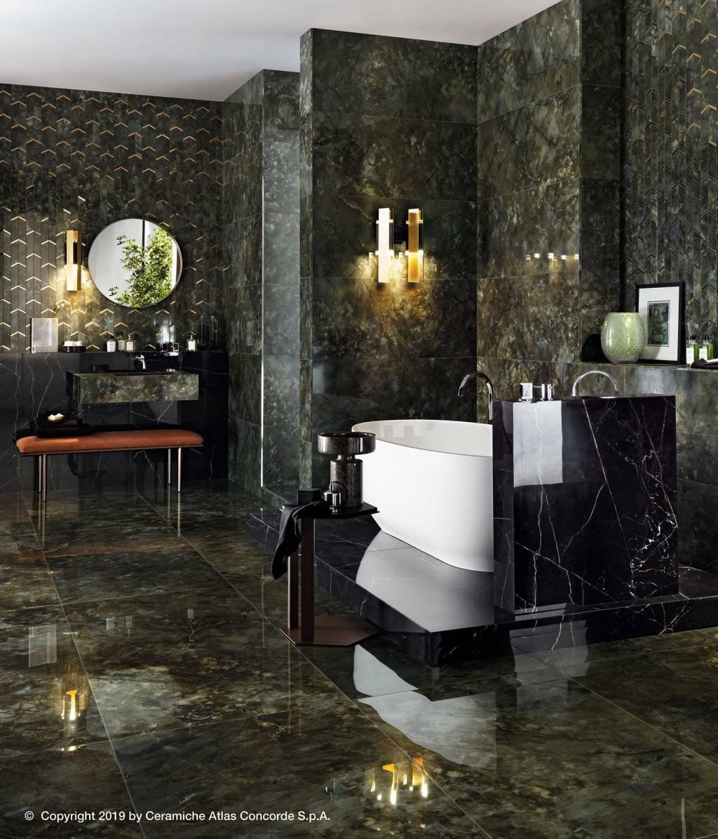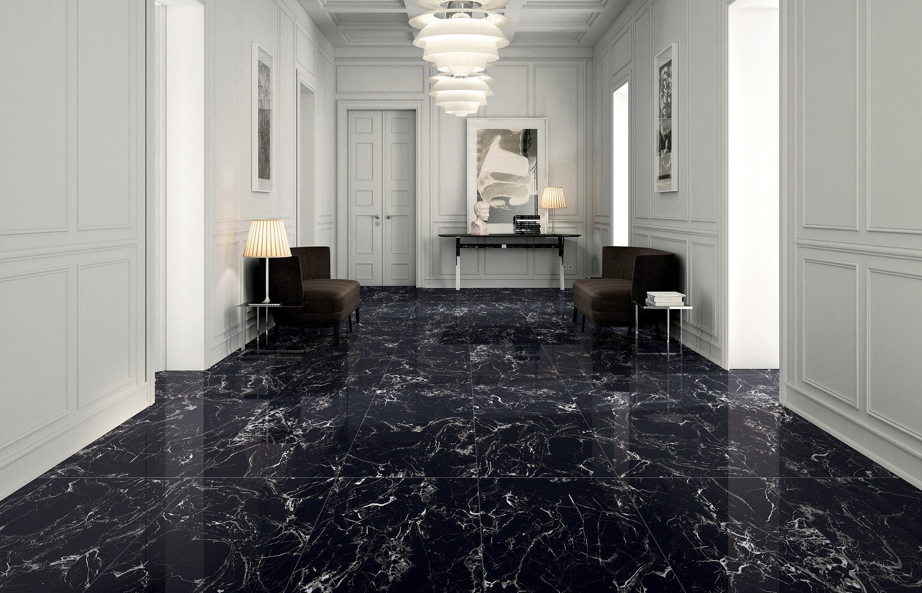 Черная плитка под мрамор в интерьере