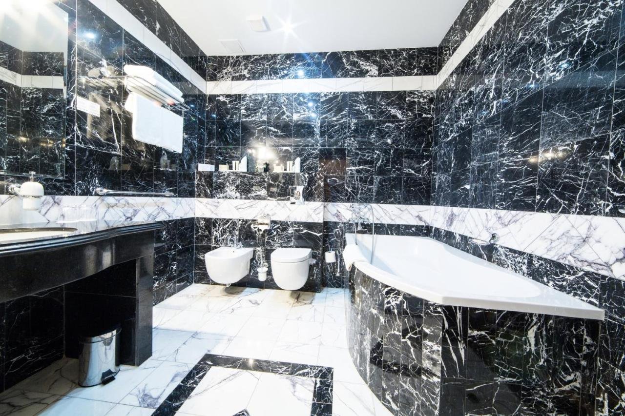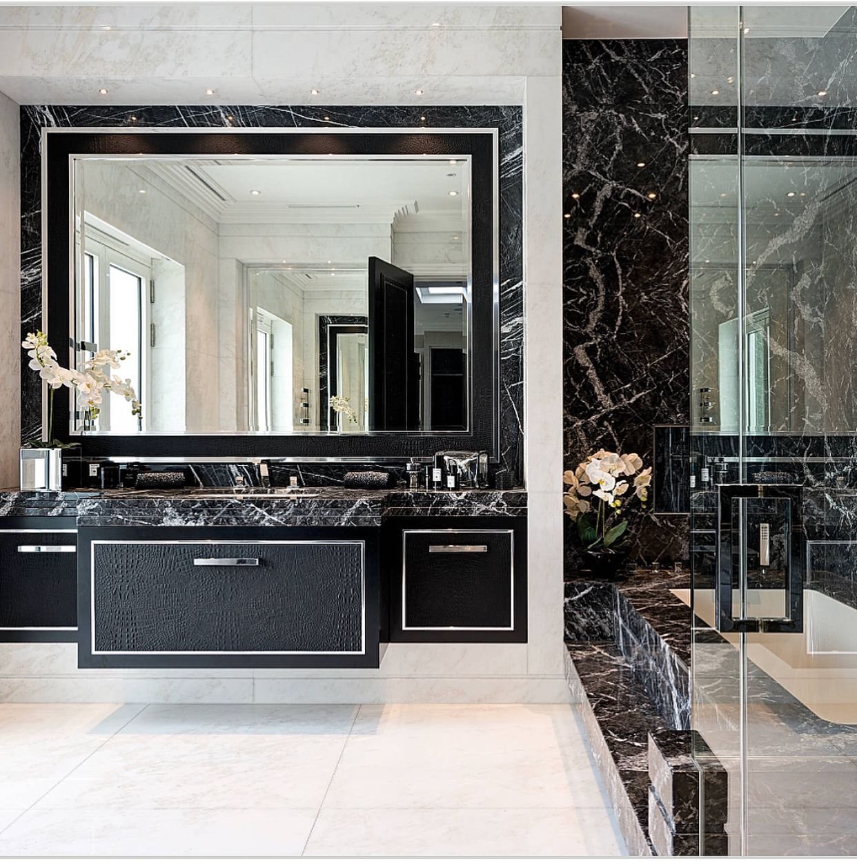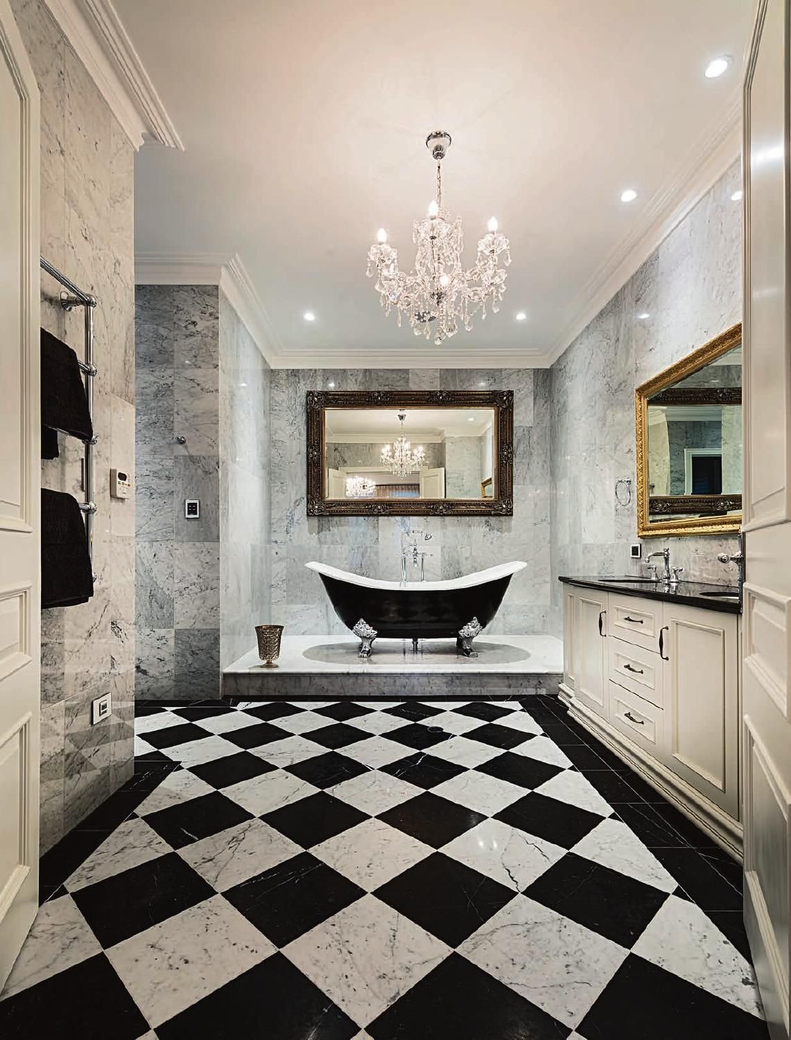 Ванная из черного и белого мрамора