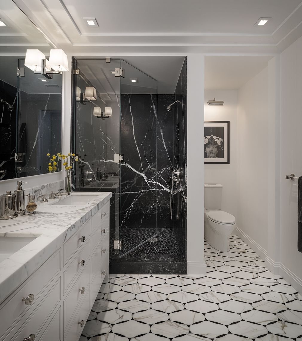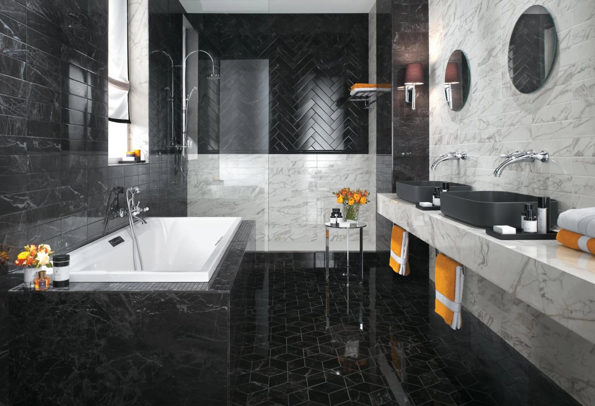 Ванная комната мраморная плитка белая с черным