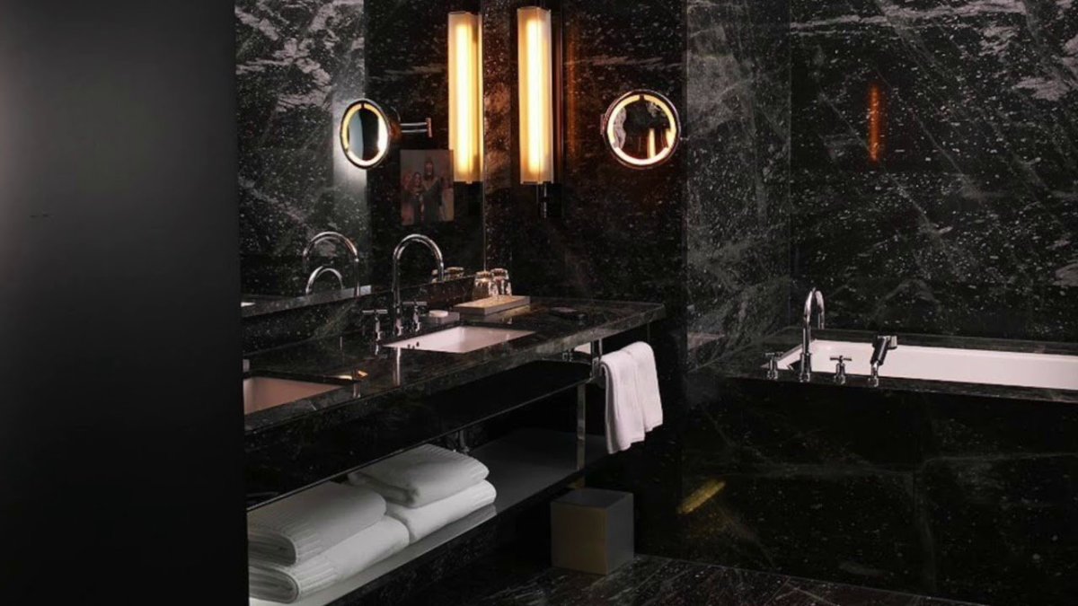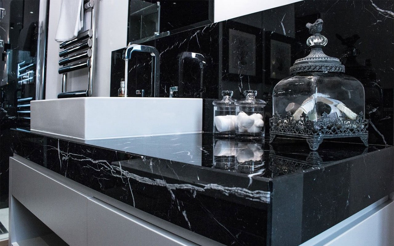 Ванная комната из черного мрамора Неро марквина