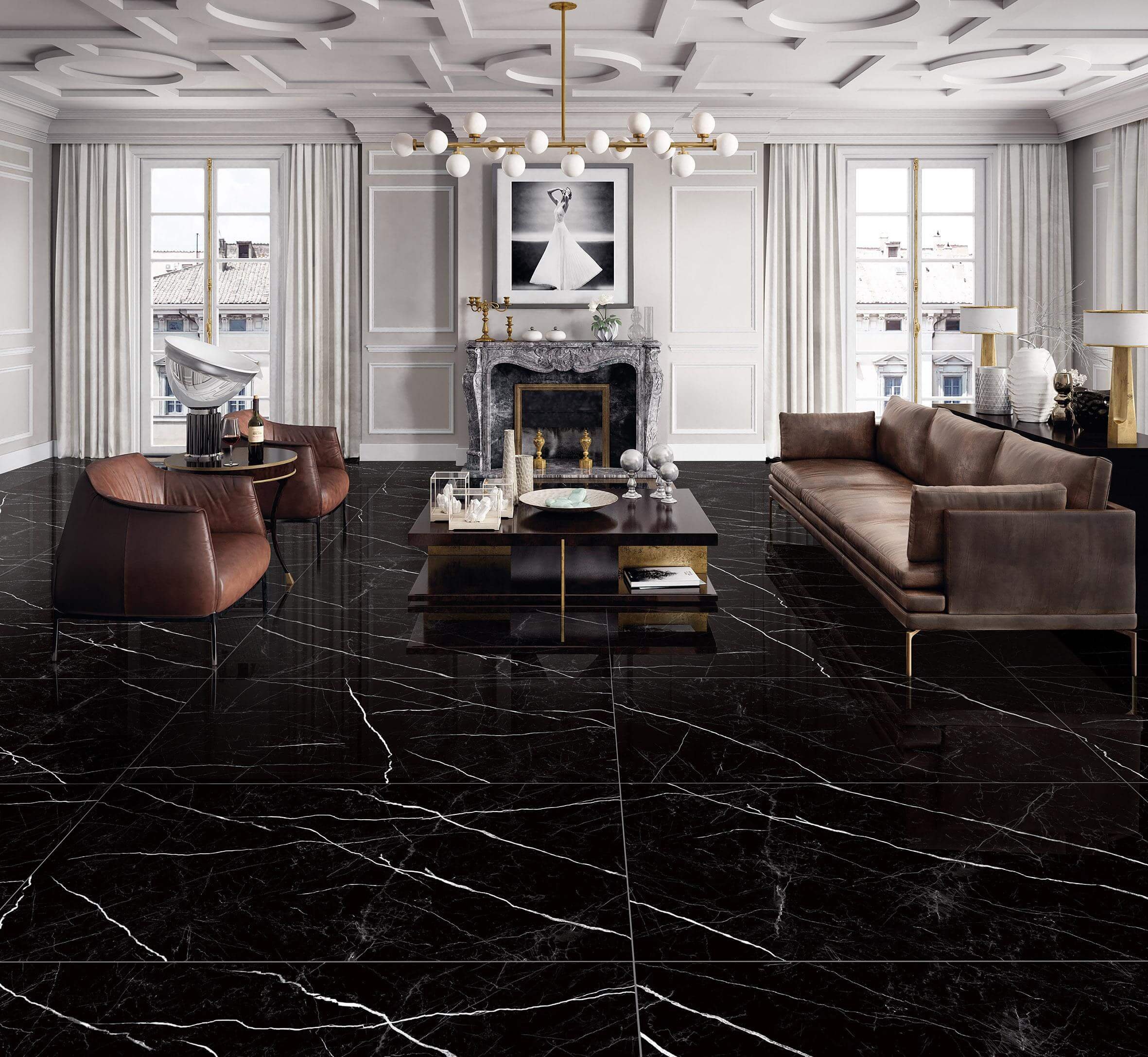 Мрамор Noir Saint Laurent в интерьере