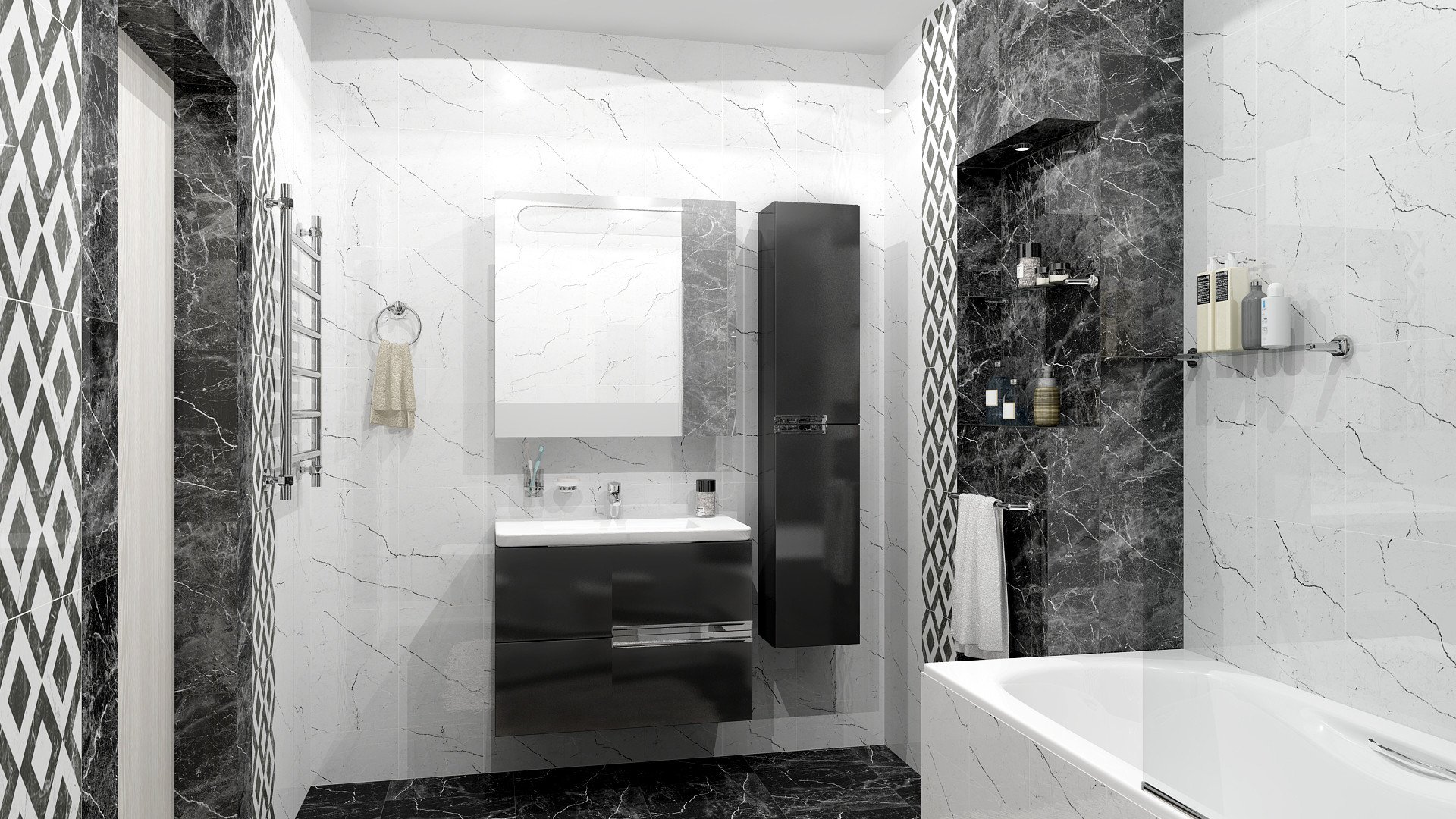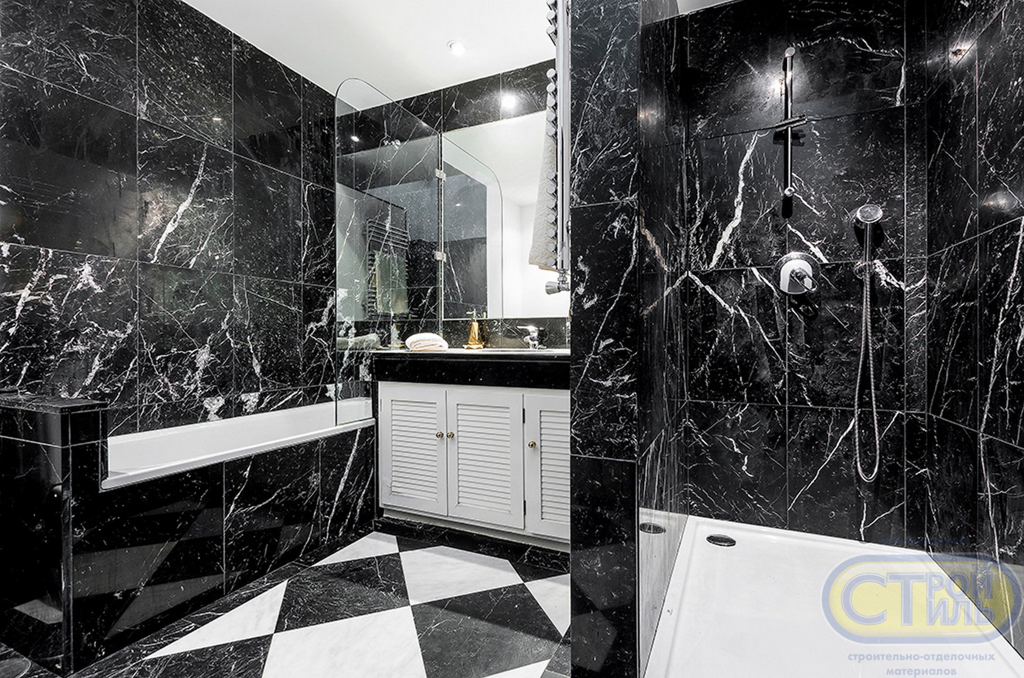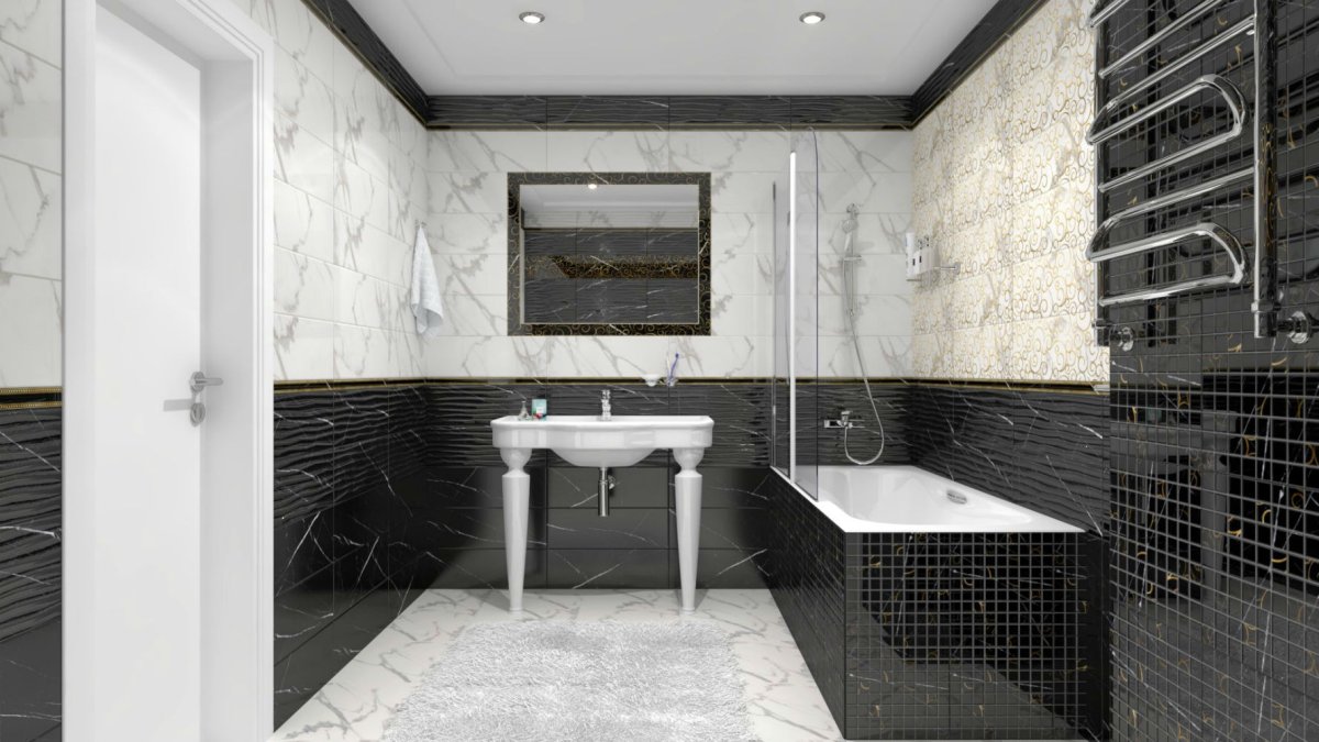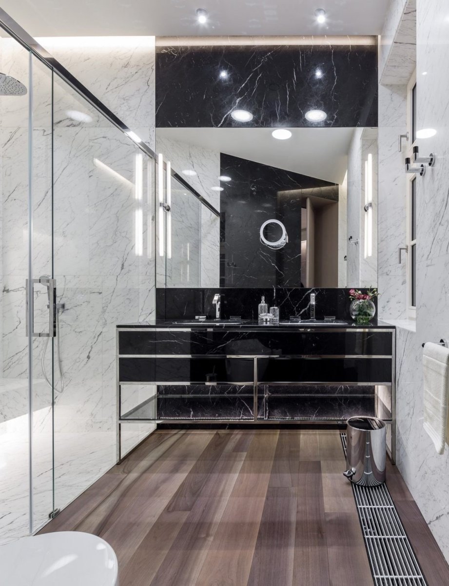 Ванная черный и белый мрамор