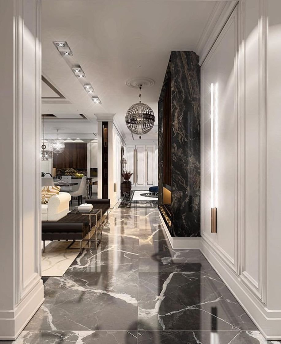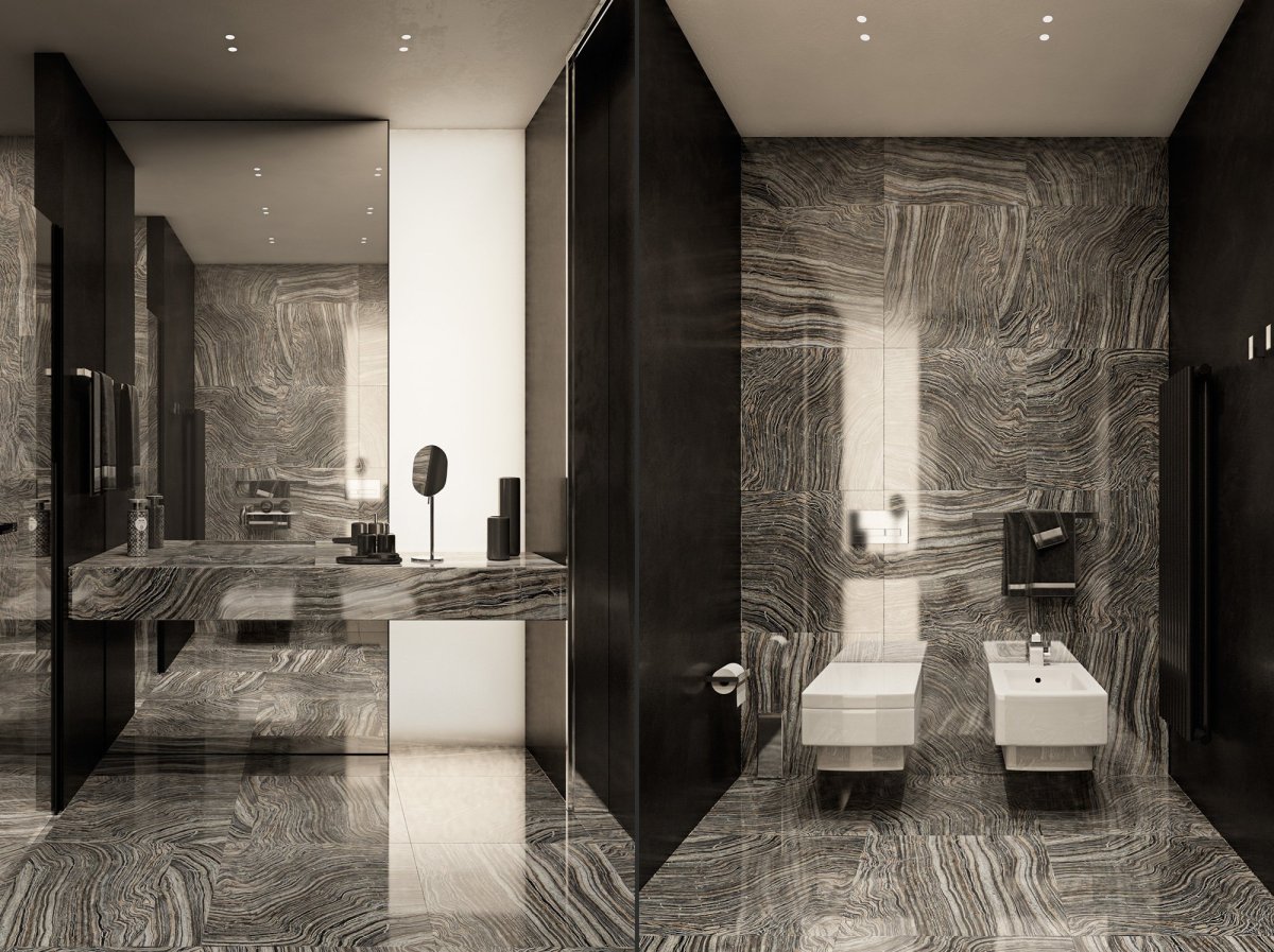 Дизайнерские комнаты с черным мрамором