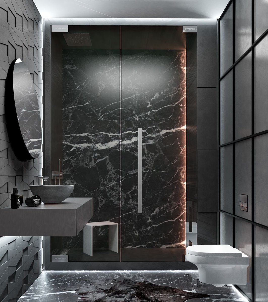 Ванная комната мраморная плитка черная