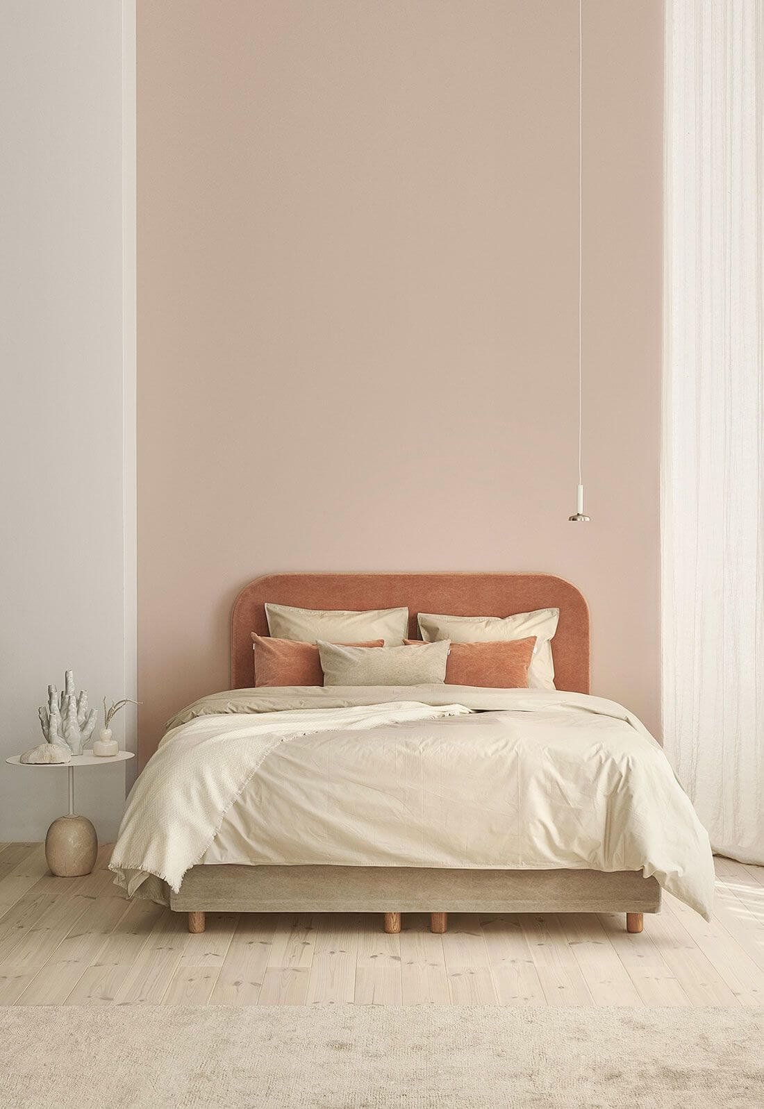 Пудровый цвет стен в спальне