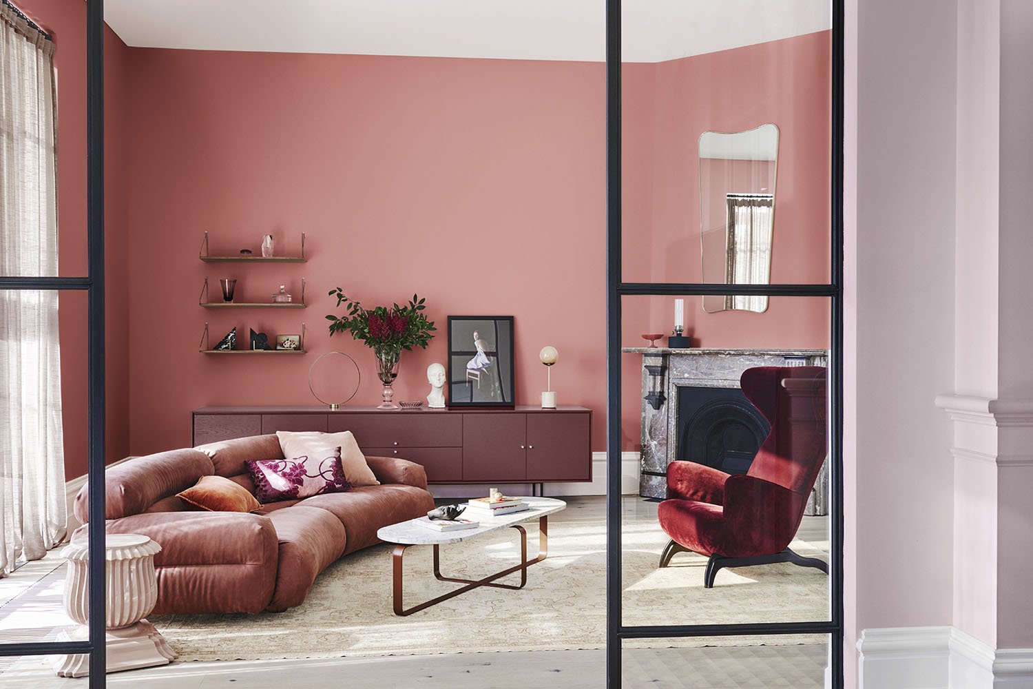 Пыльно розовый цвет стен в интерьере