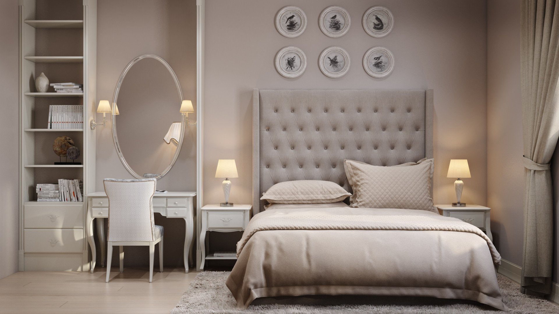 Спальня в нюдовых и пастельных тонах