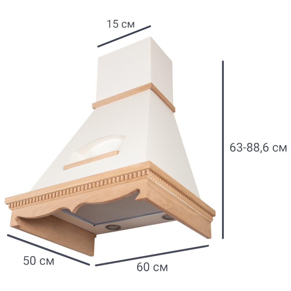 Каминная вытяжка Elikor аркада 90 кремовый / дуб белый с патиной де капе