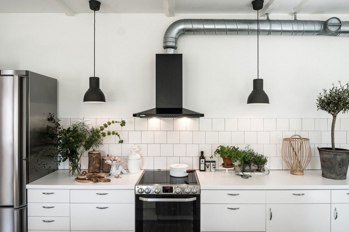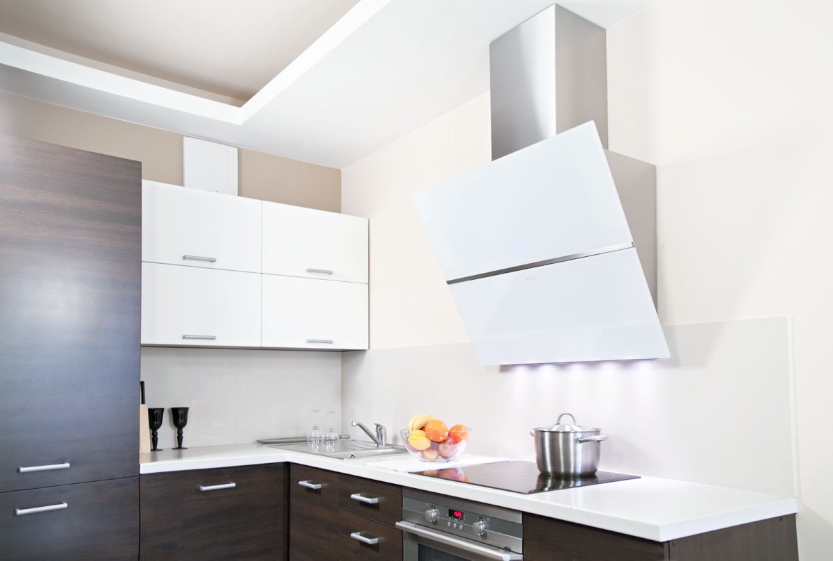 Белая вытяжка в интерьере