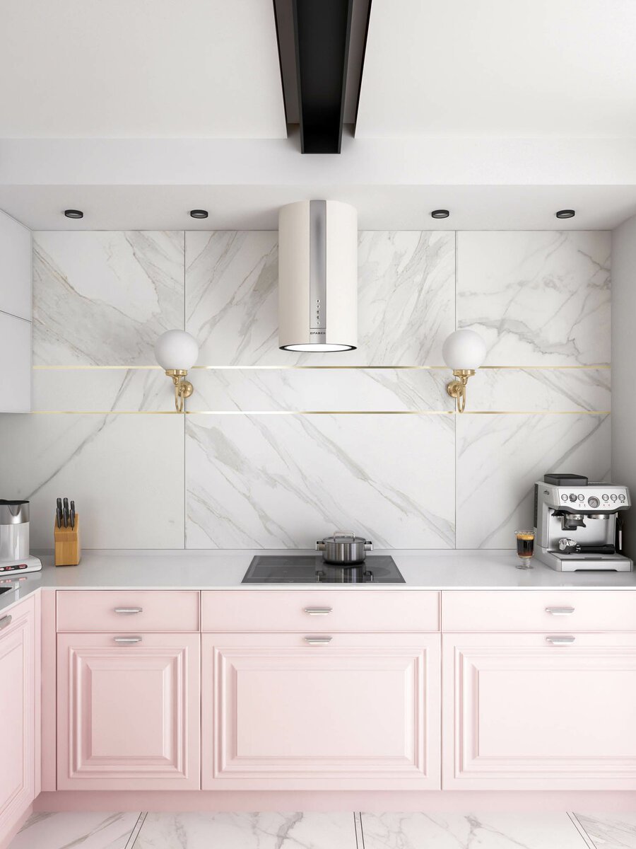 Плитка белый мрамор на кухне