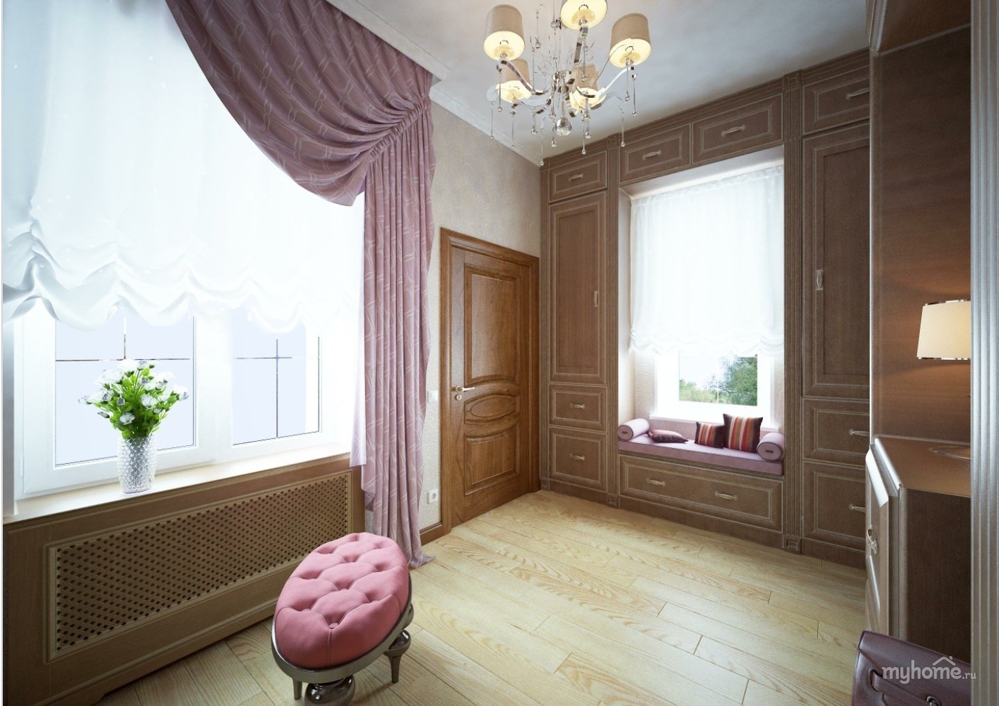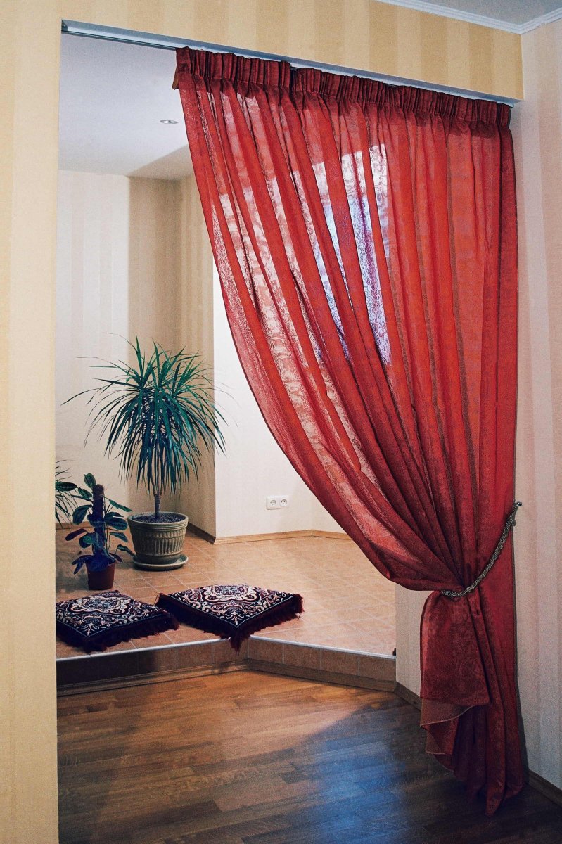 Зонирование комнаты шторами