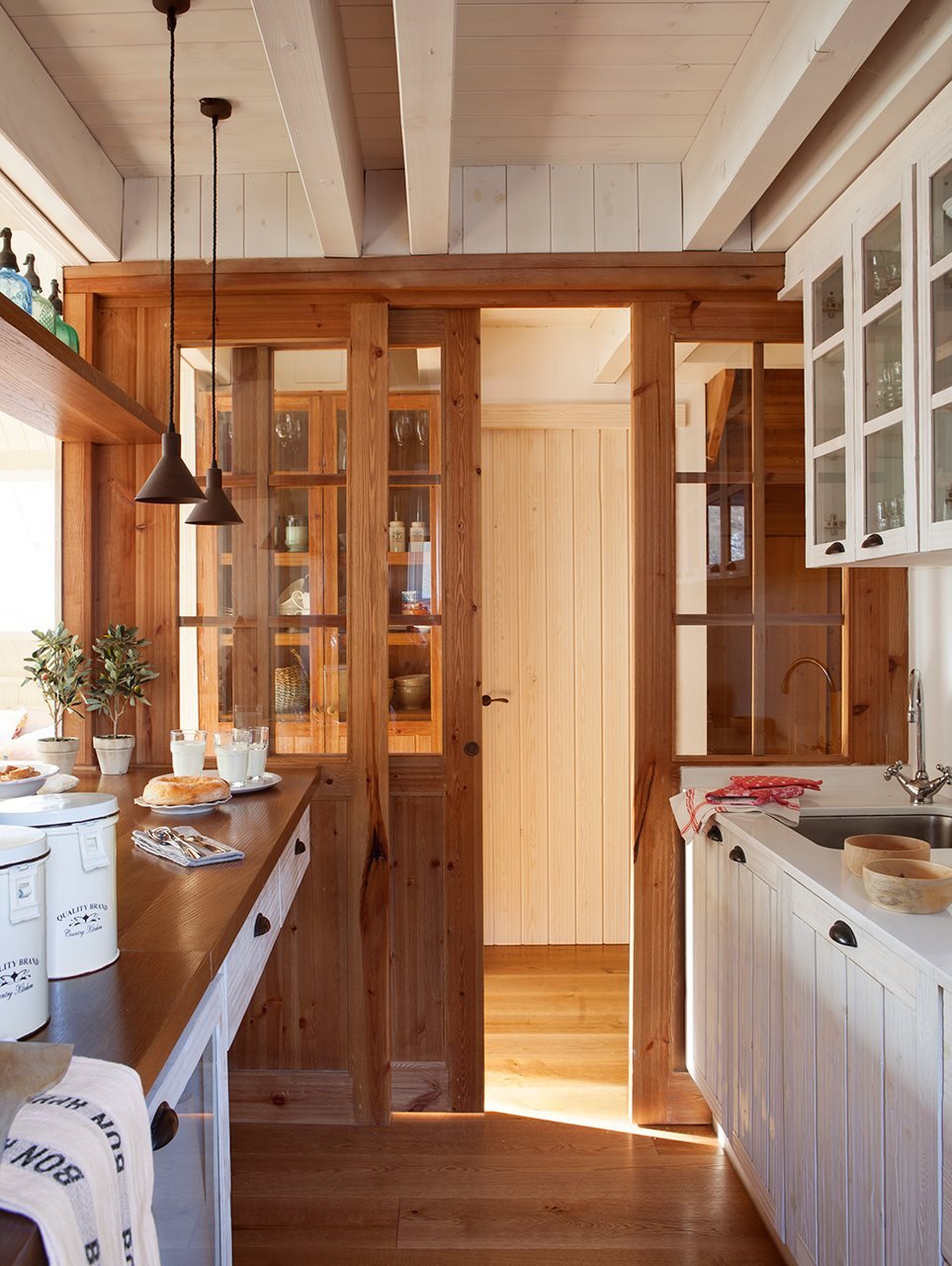 Отделка кухни деревянной вагонкой
