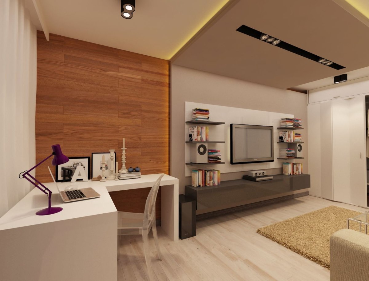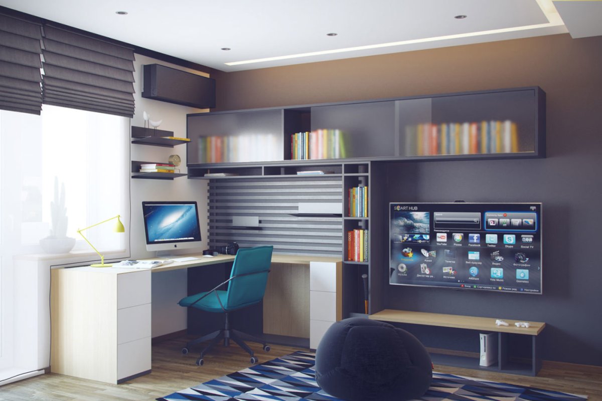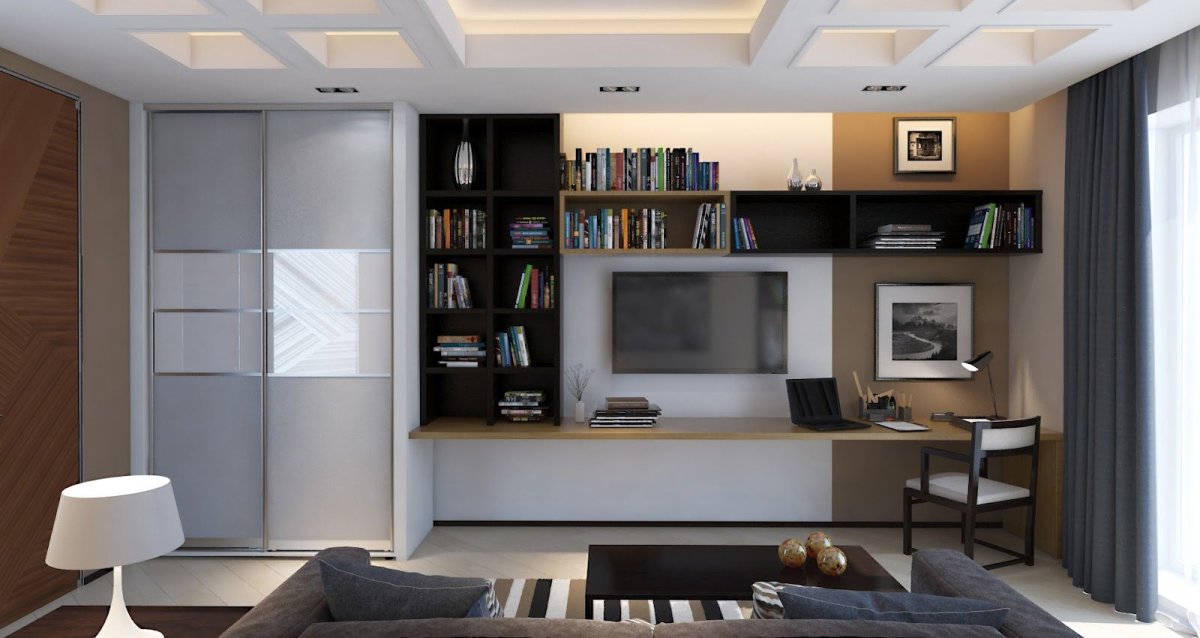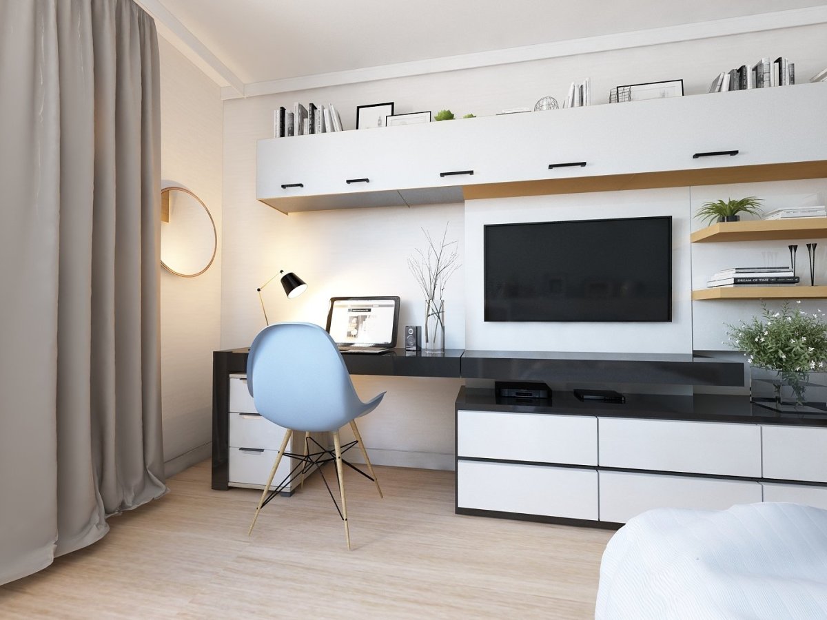 ТВ стенка с рабочим местом в стиле Контемпорари