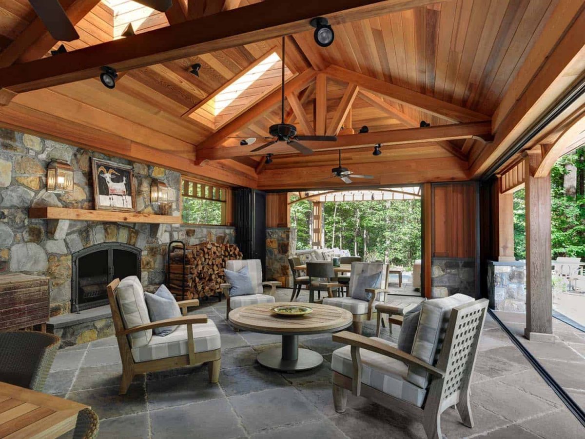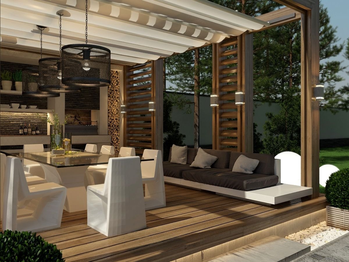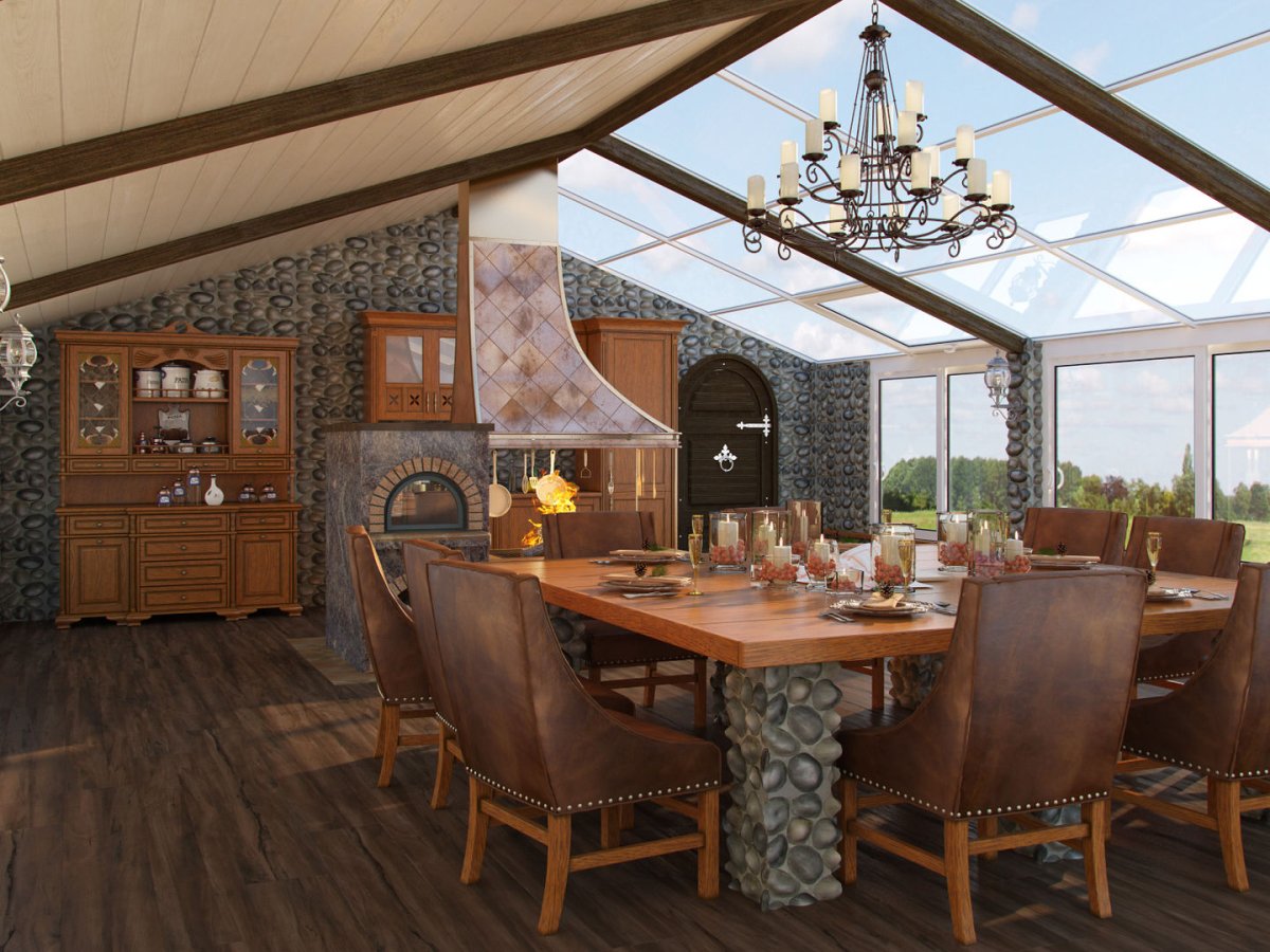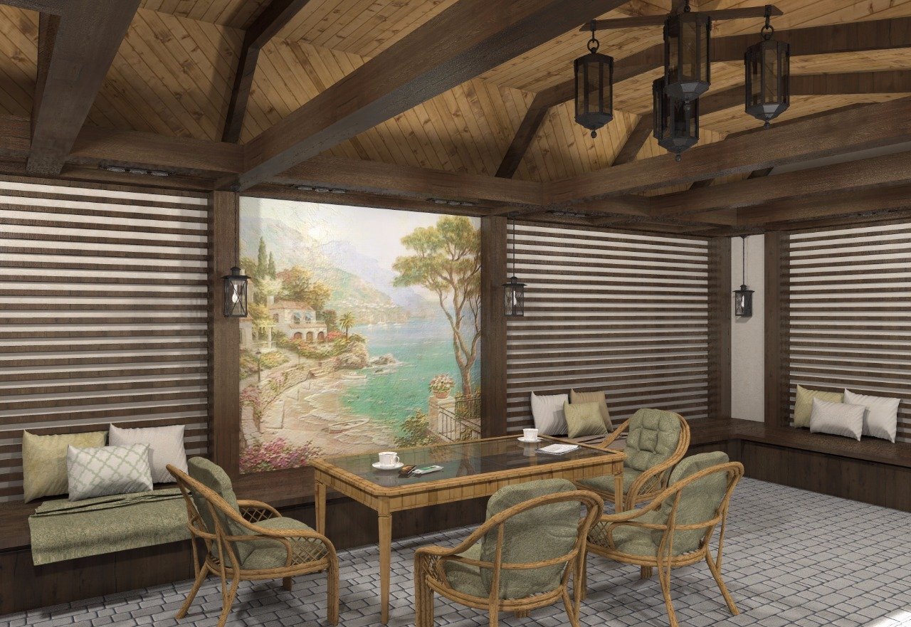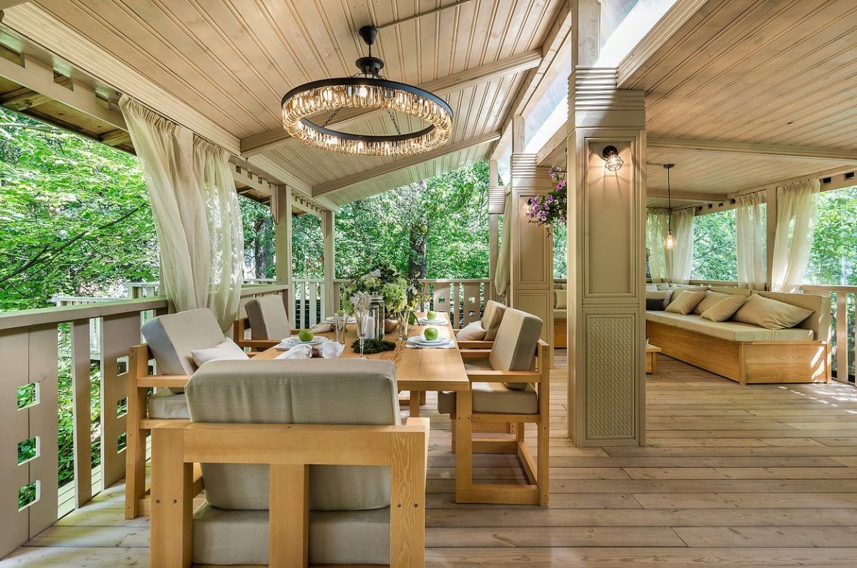 Веранда с мангальной зоной пристроенная к дому застекленная