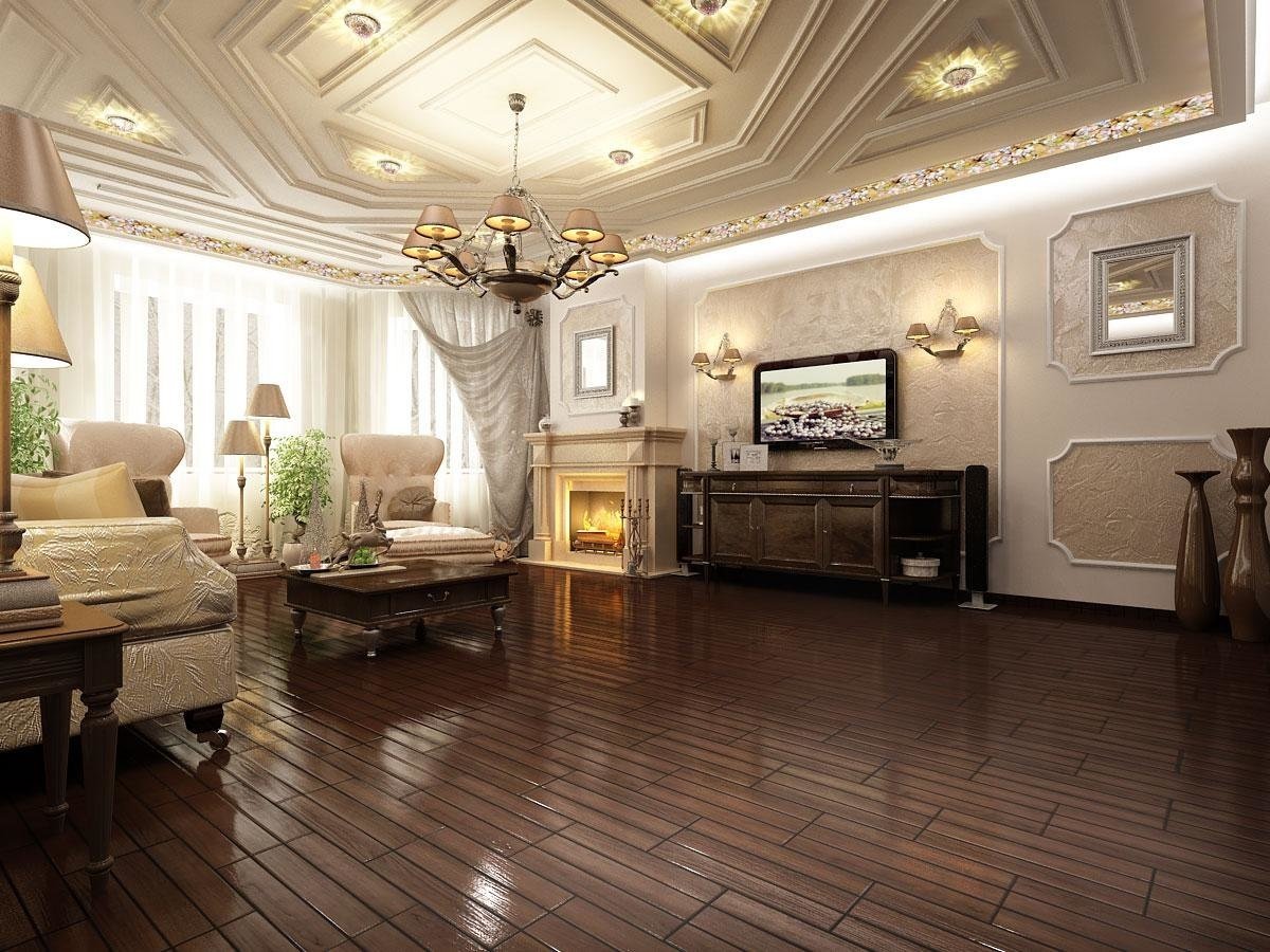 Комбинированный пол в гостиной