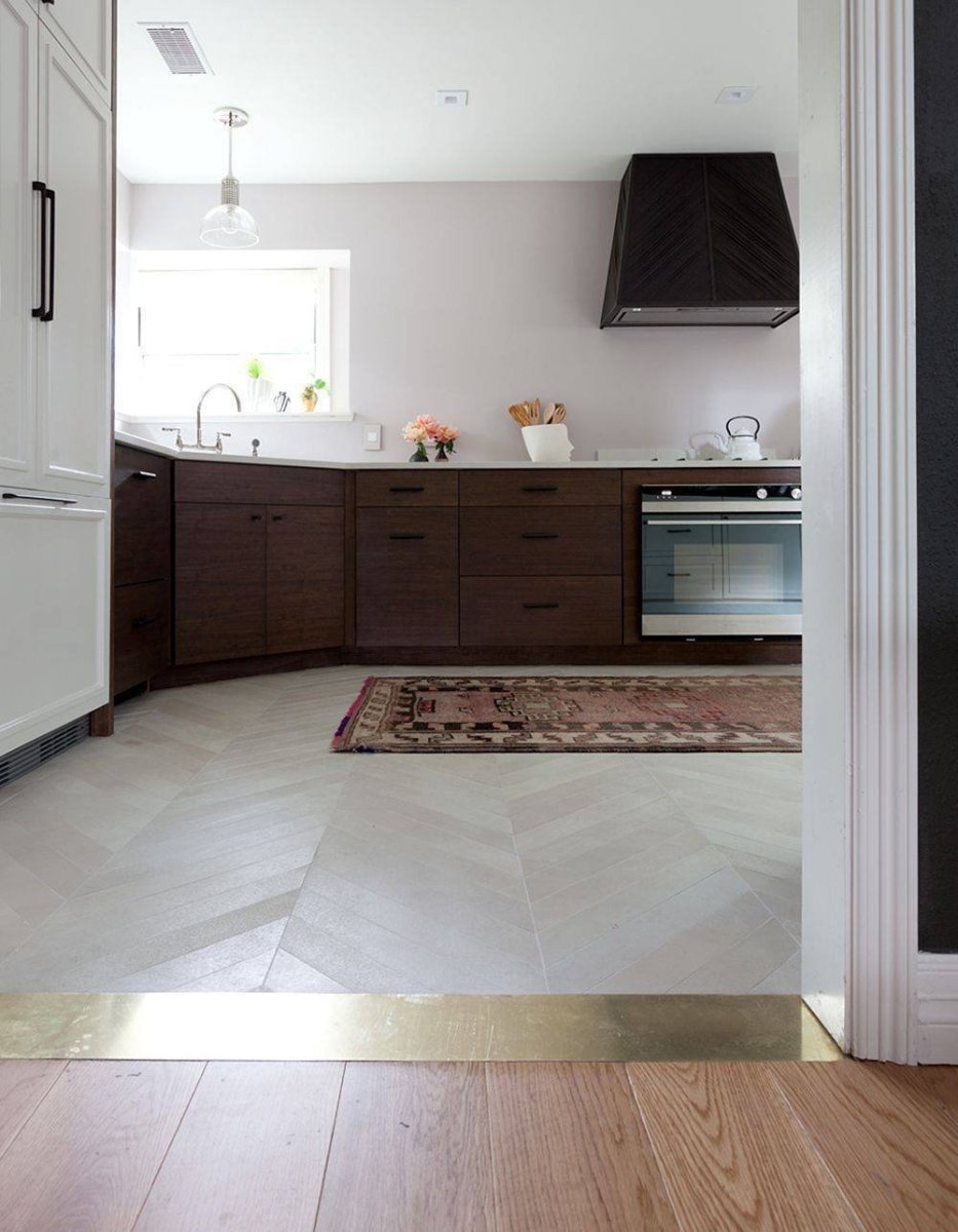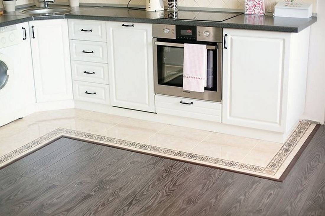 Комбинированный пол на кухне плитка и ламинат