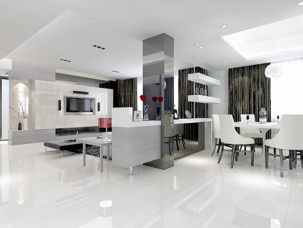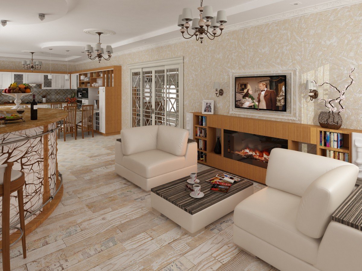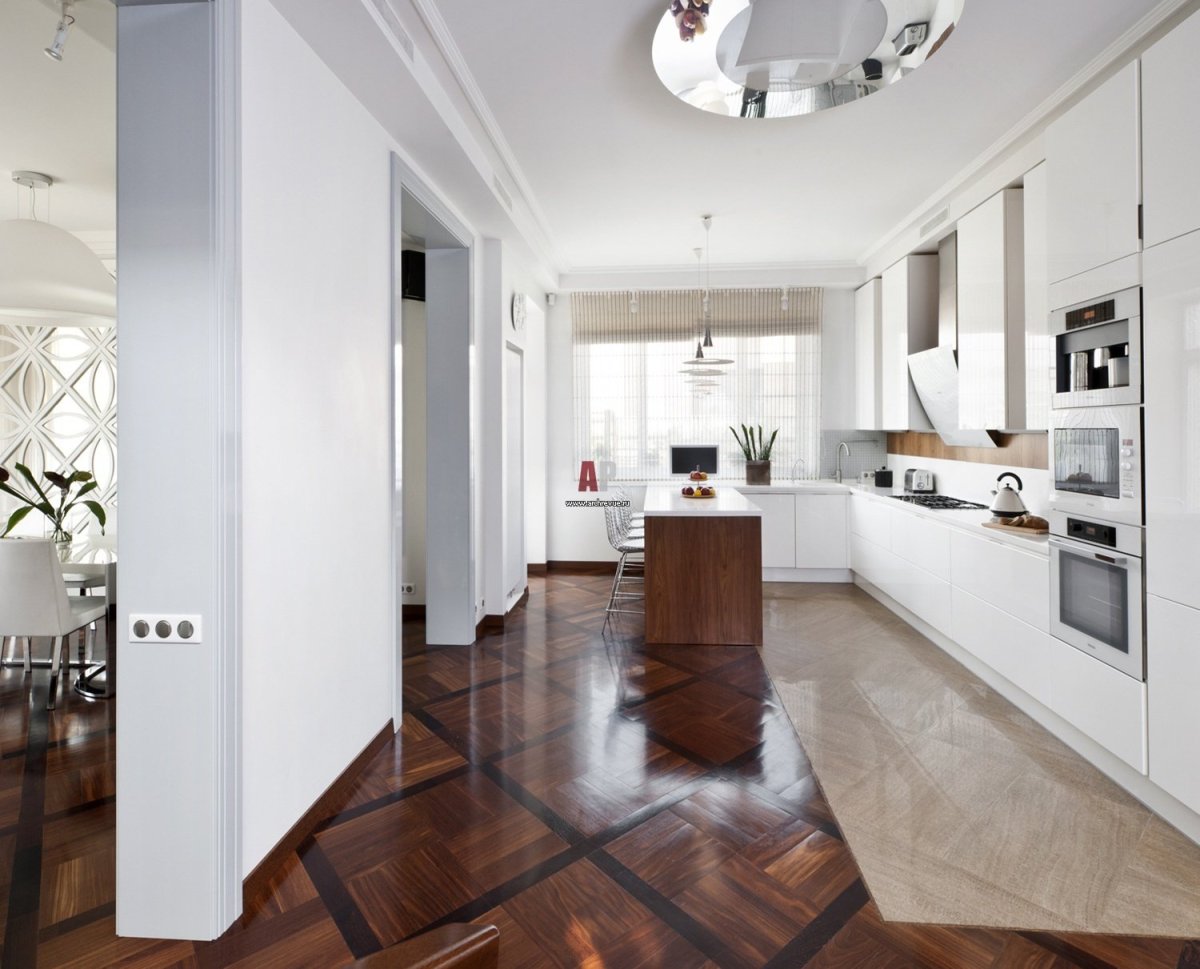 Интерьер пола в кухне гостиной