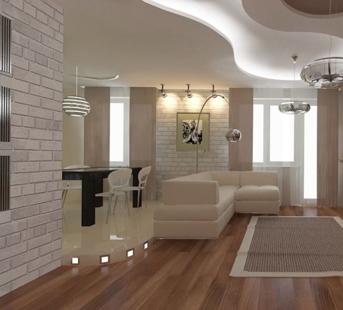 Зонирование пола кухня гостиная