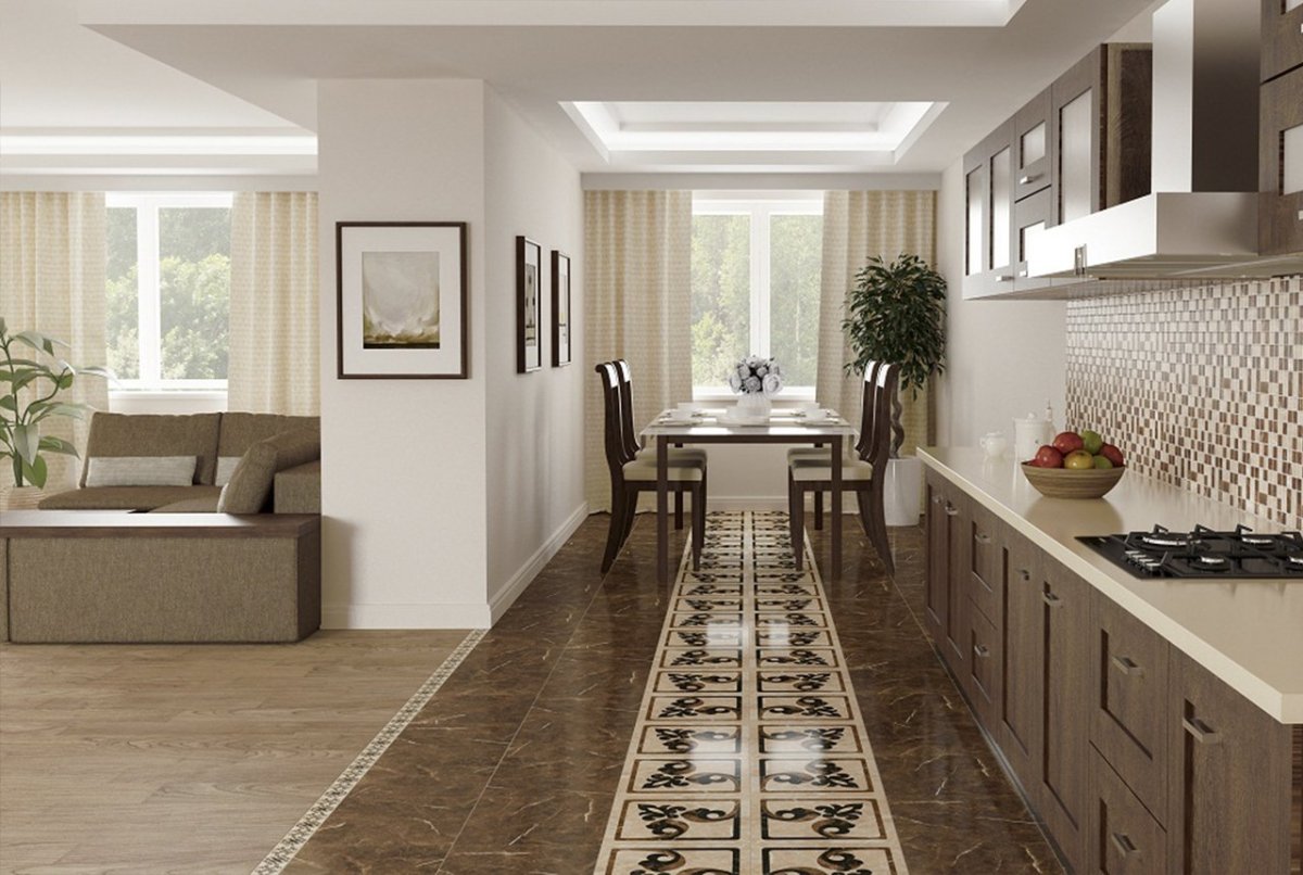 Плитка в кухне-гостиной на полу