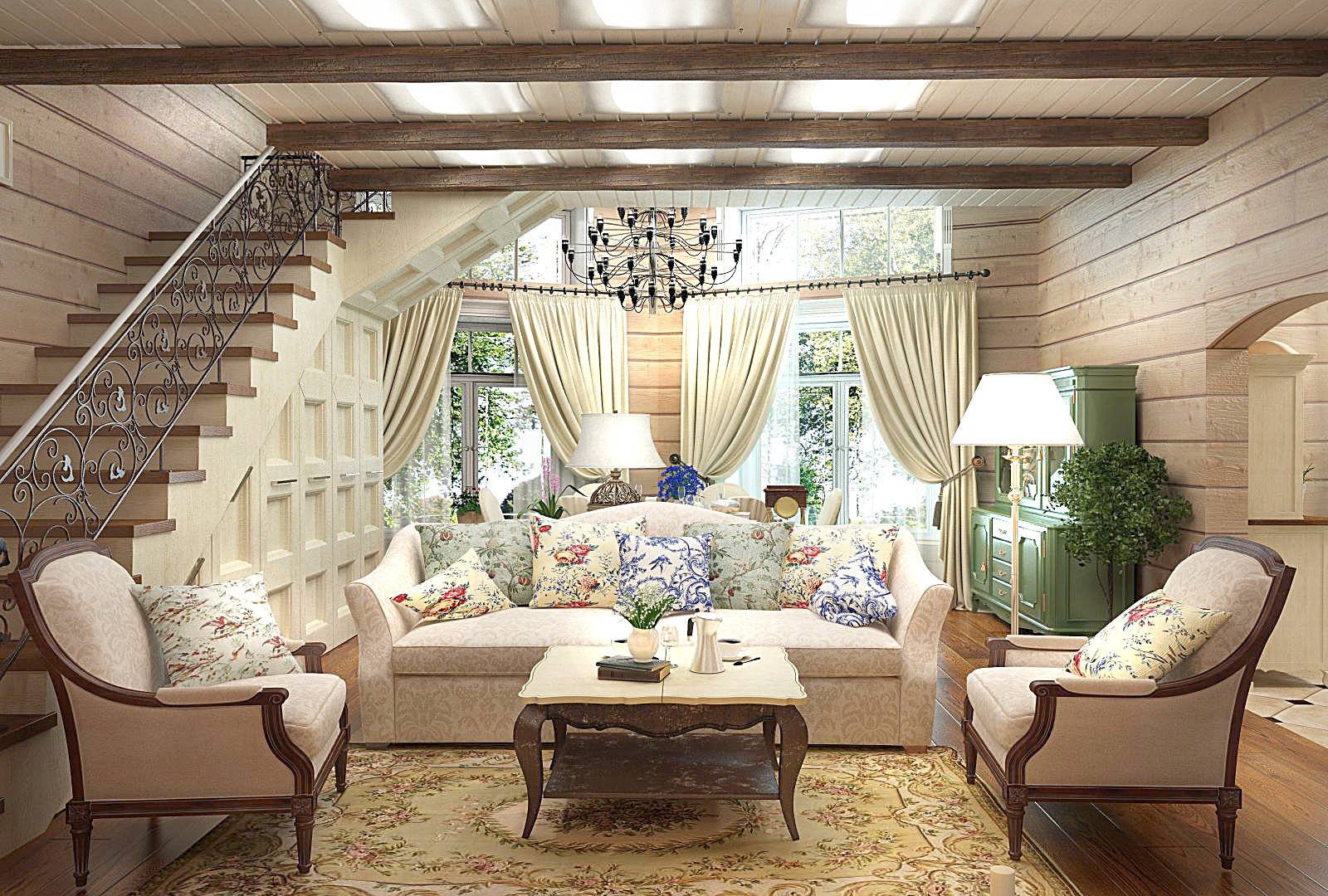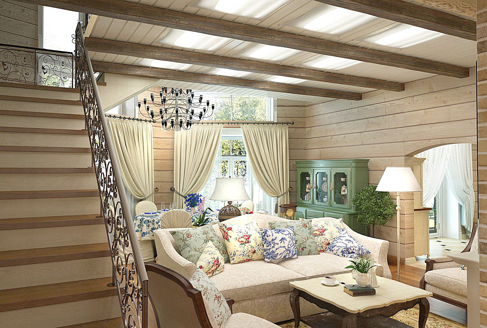 Интерьер дома из клееного бруса в стиле Прованс