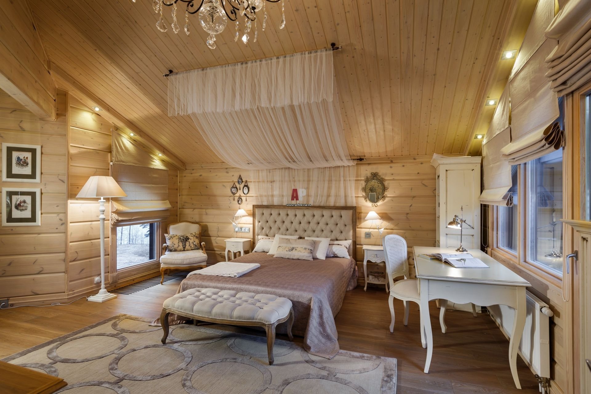 Шторы в интерьере деревянного дома