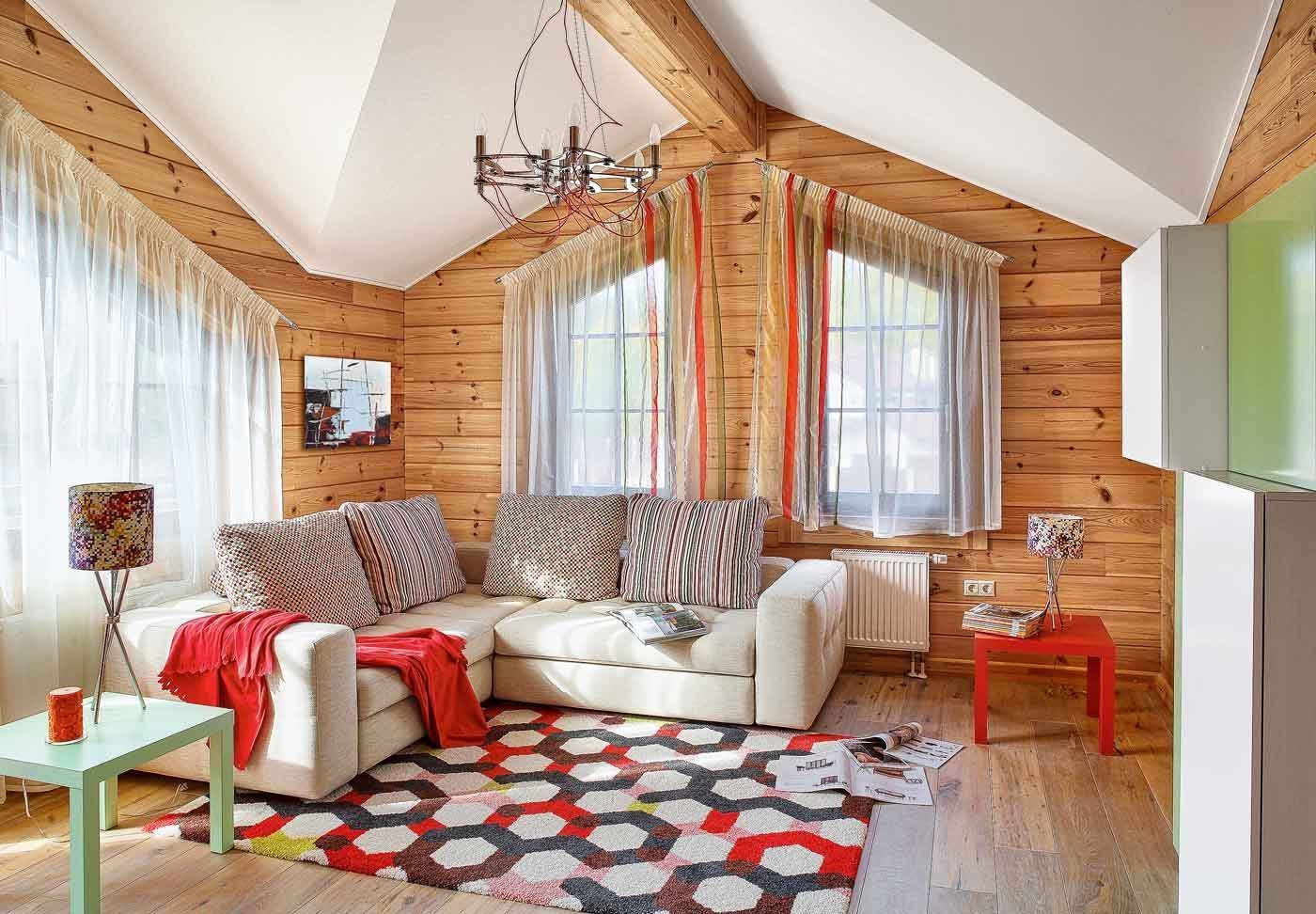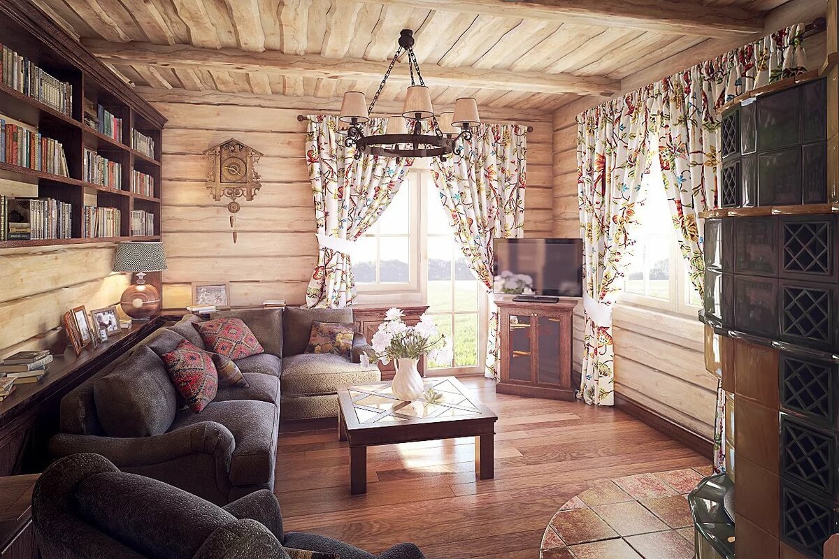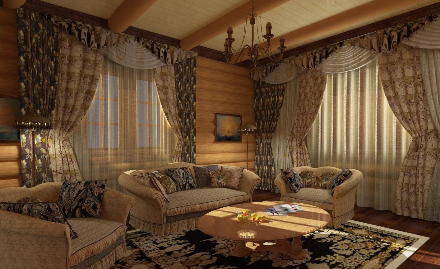 Шторы в гостиную в деревянном доме