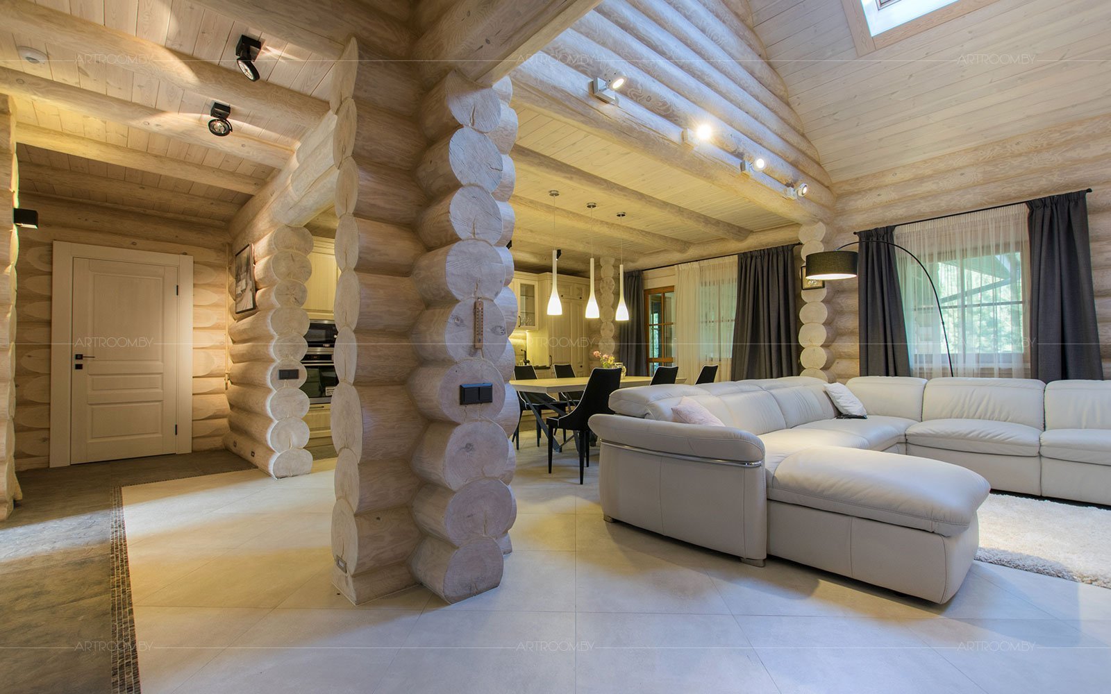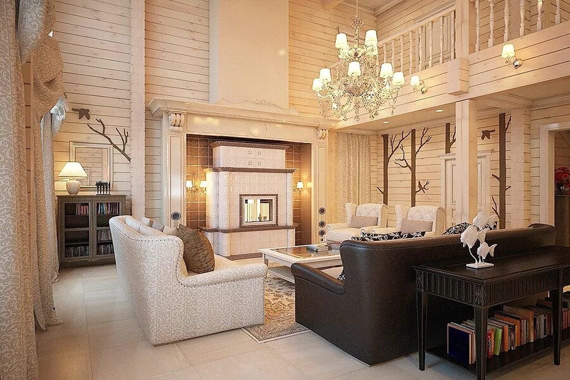 Дом из оцилиндрованного бревна внутри интерьер