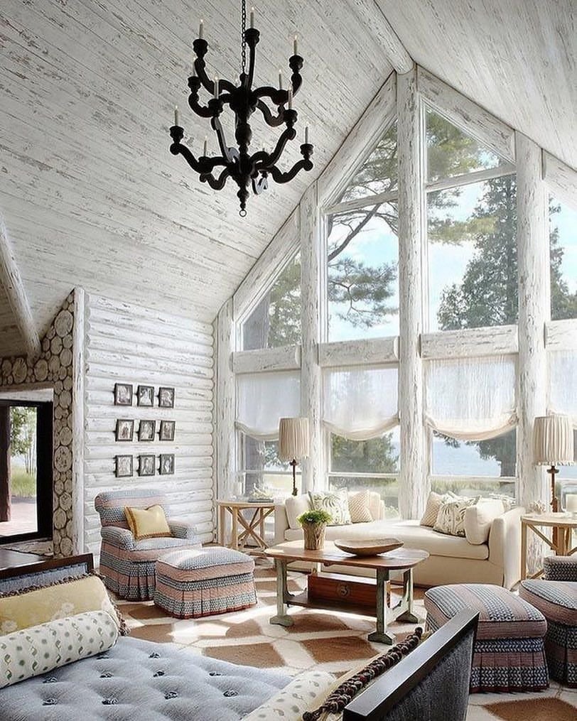 Гостиная Прованс Кантри в бревенчатом доме