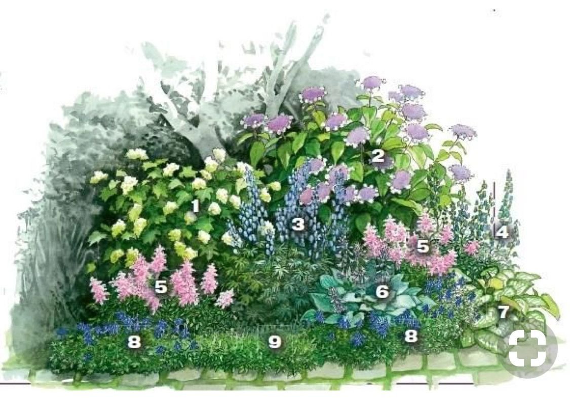 Миксбордер вдоль забора схема