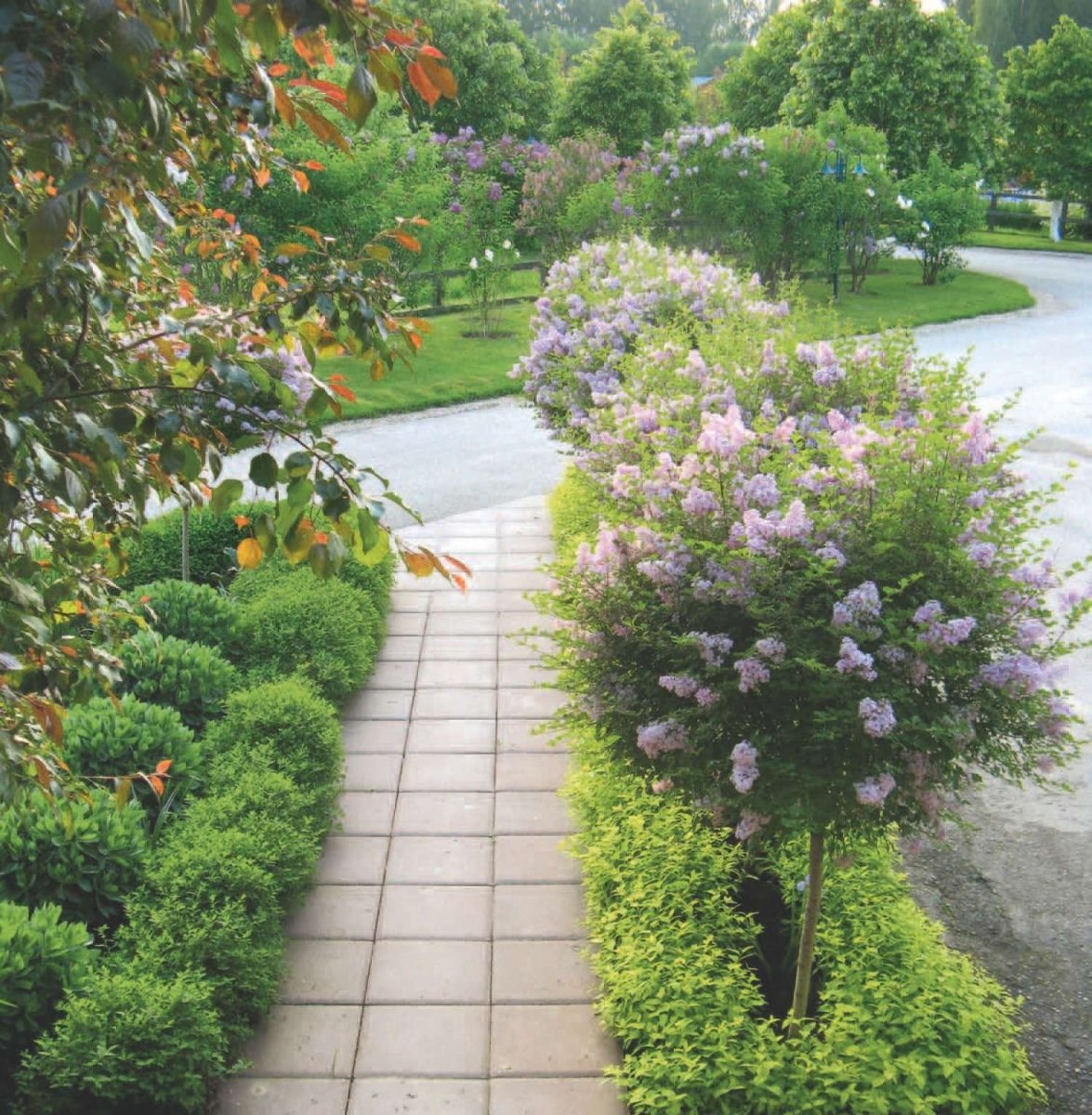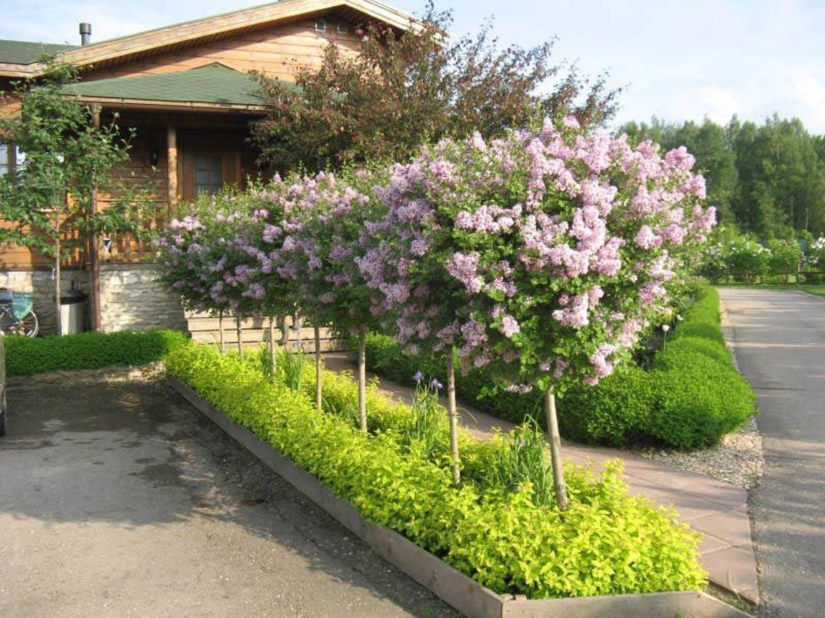 Сирень Мейера Палибин на штамбе в ландшафте