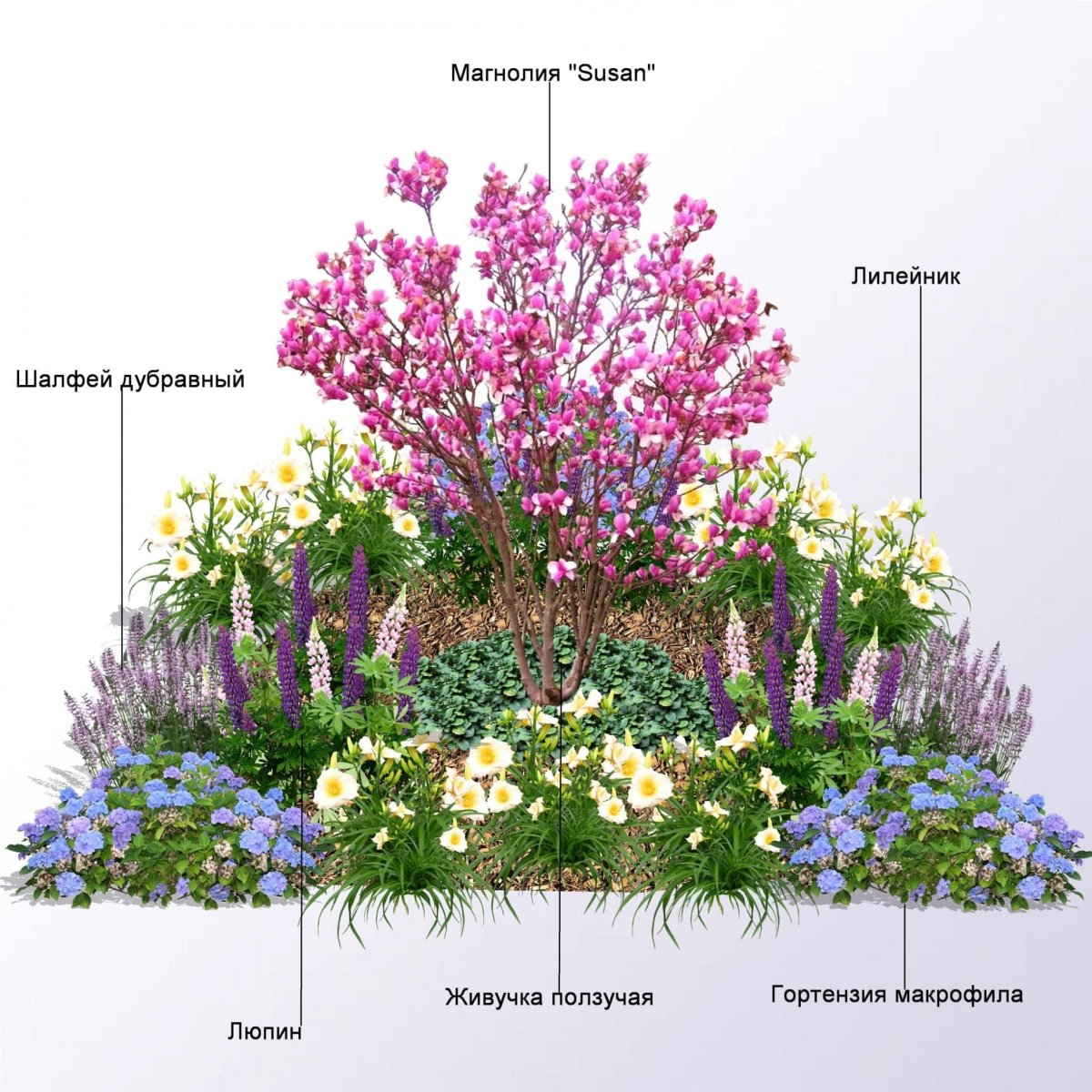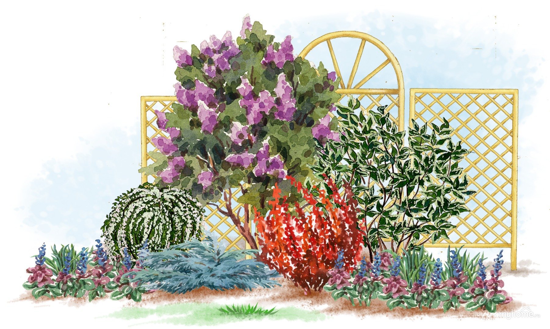 Миксбордер из хвойных и многолетников схемы