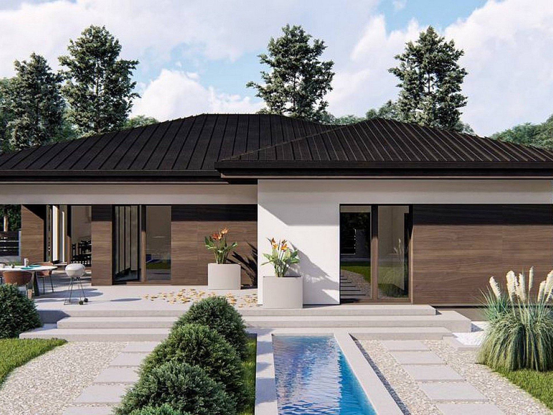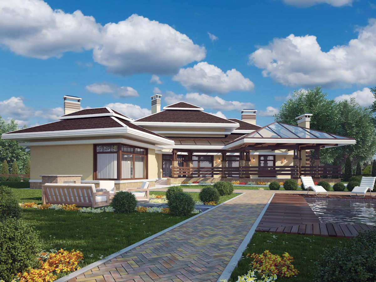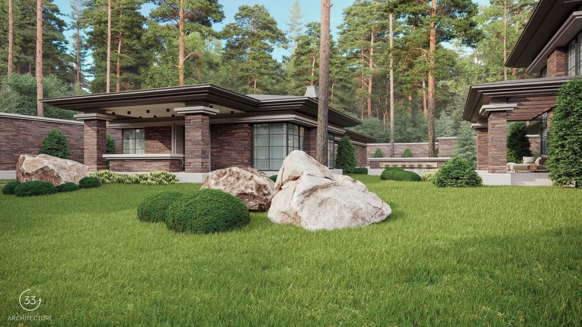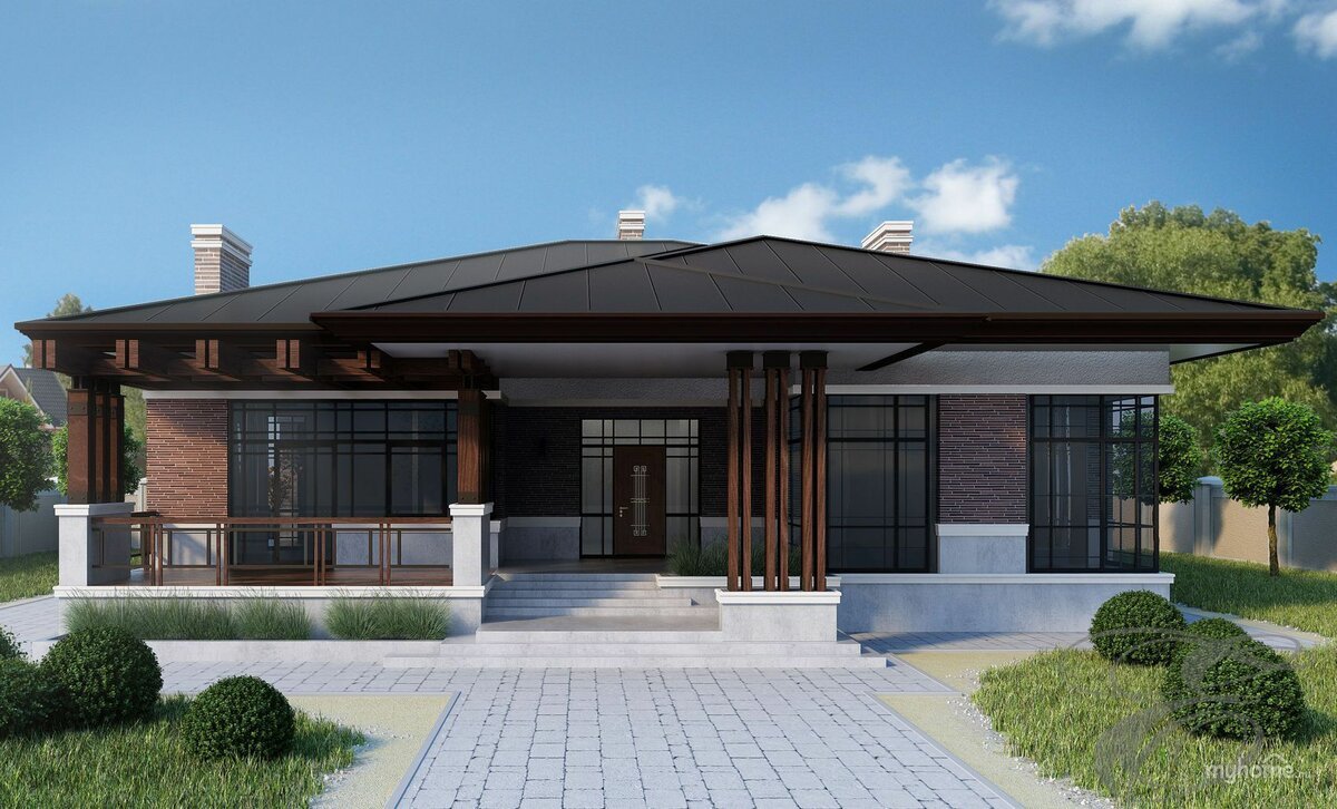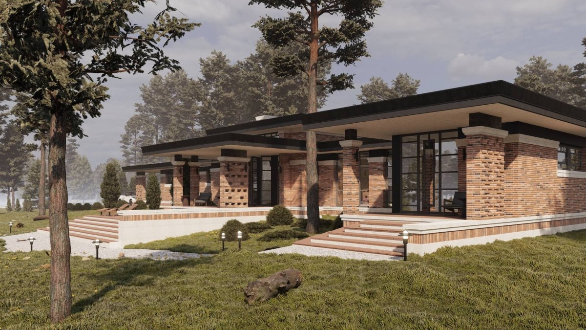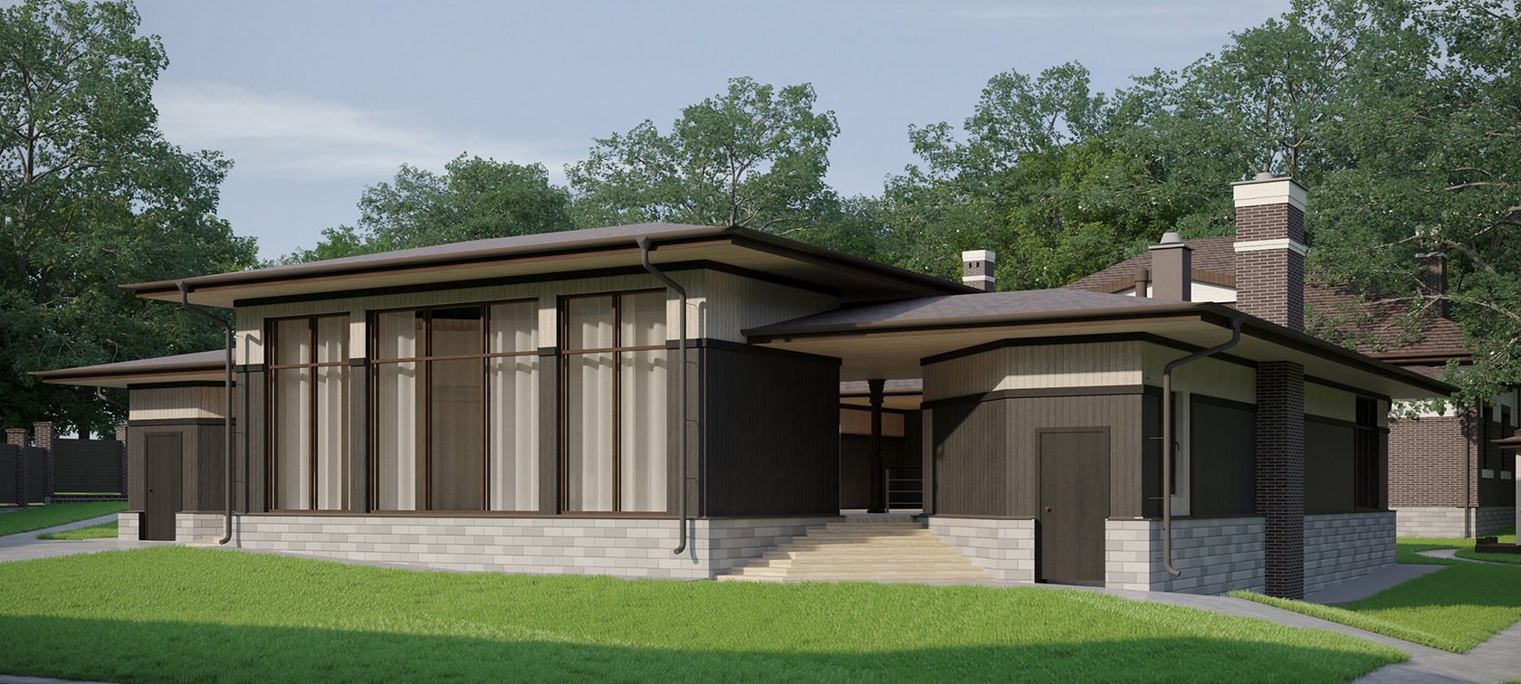 Проекты одноэтажных домов 200-250 кв.м в стиле Райта