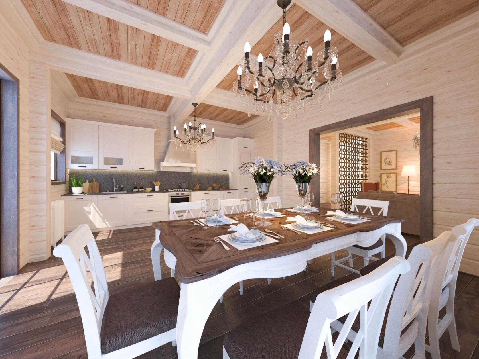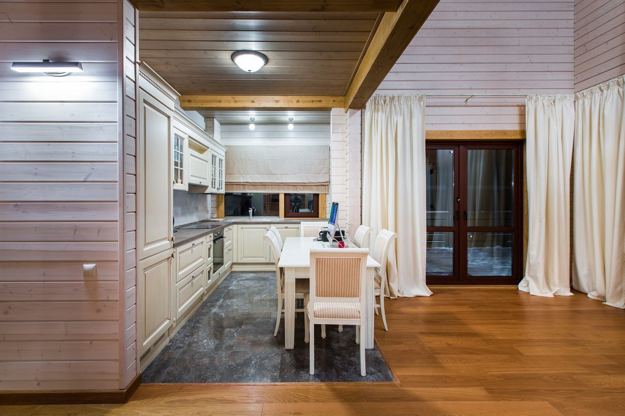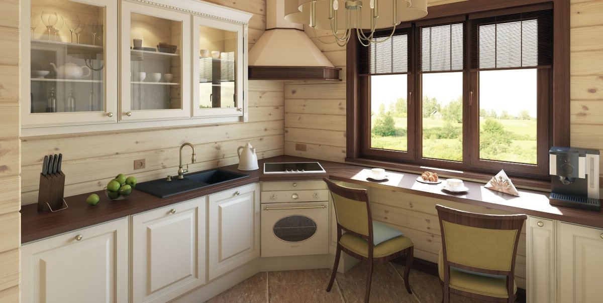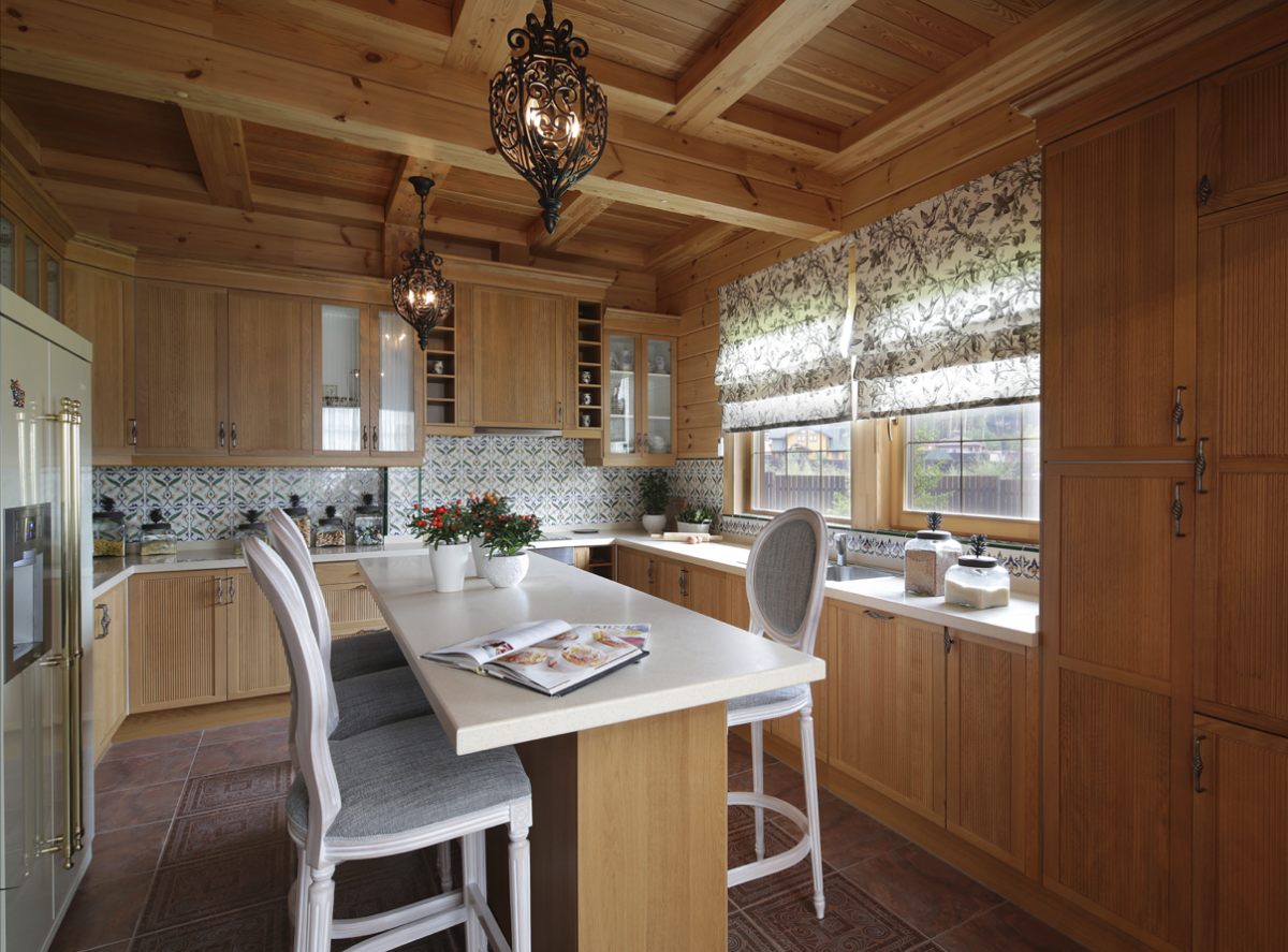 Интерьер кухни в стиле Прованс в доме из клееного бруса