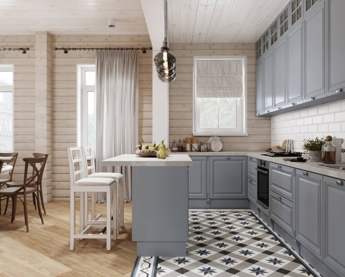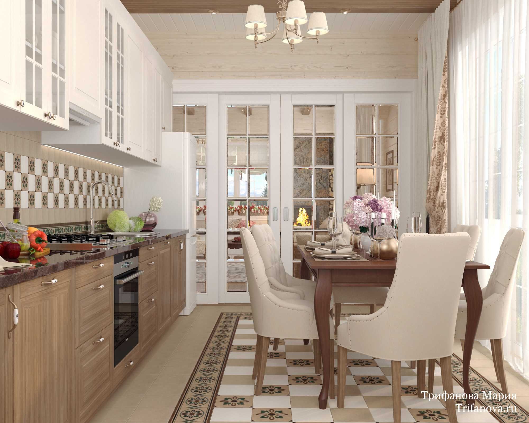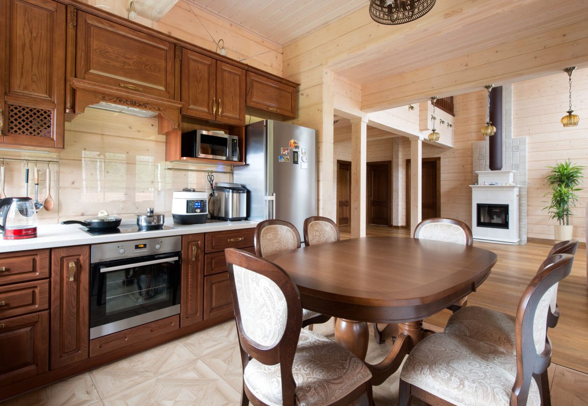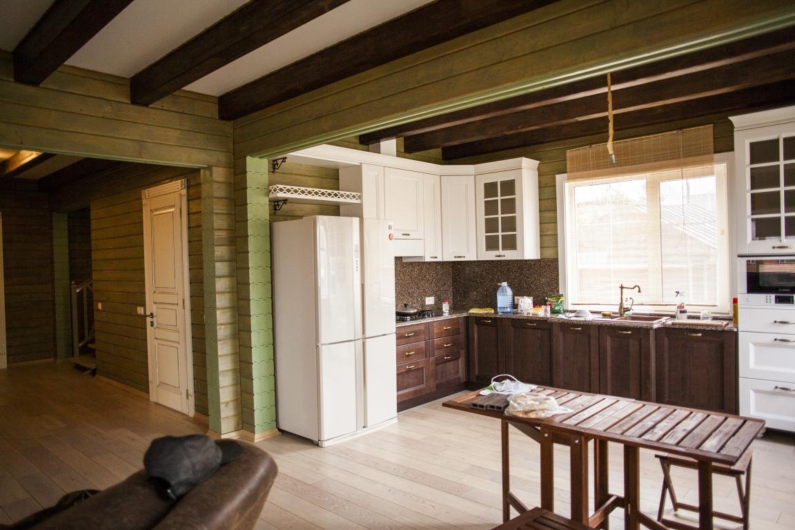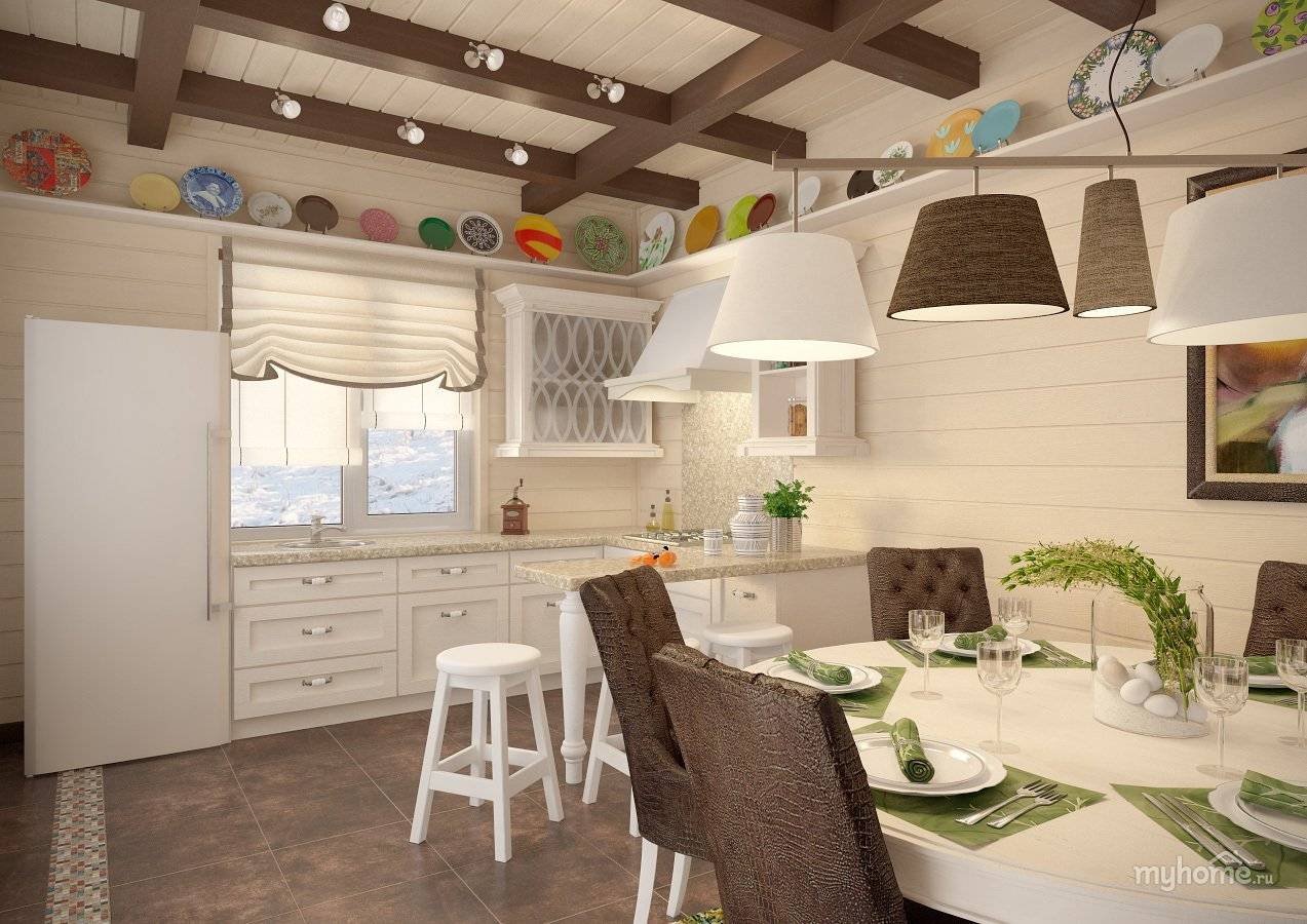 Интерьер кухни в стиле Прованс в доме из клееного бруса