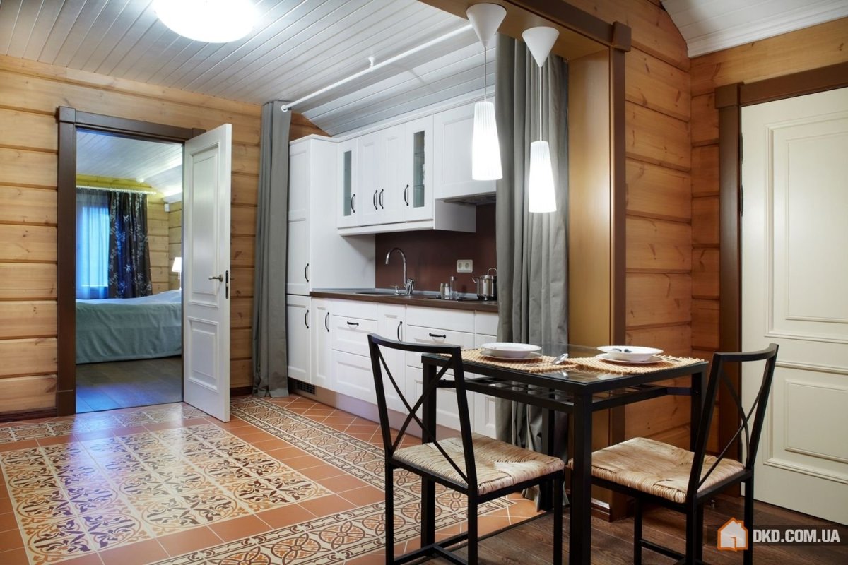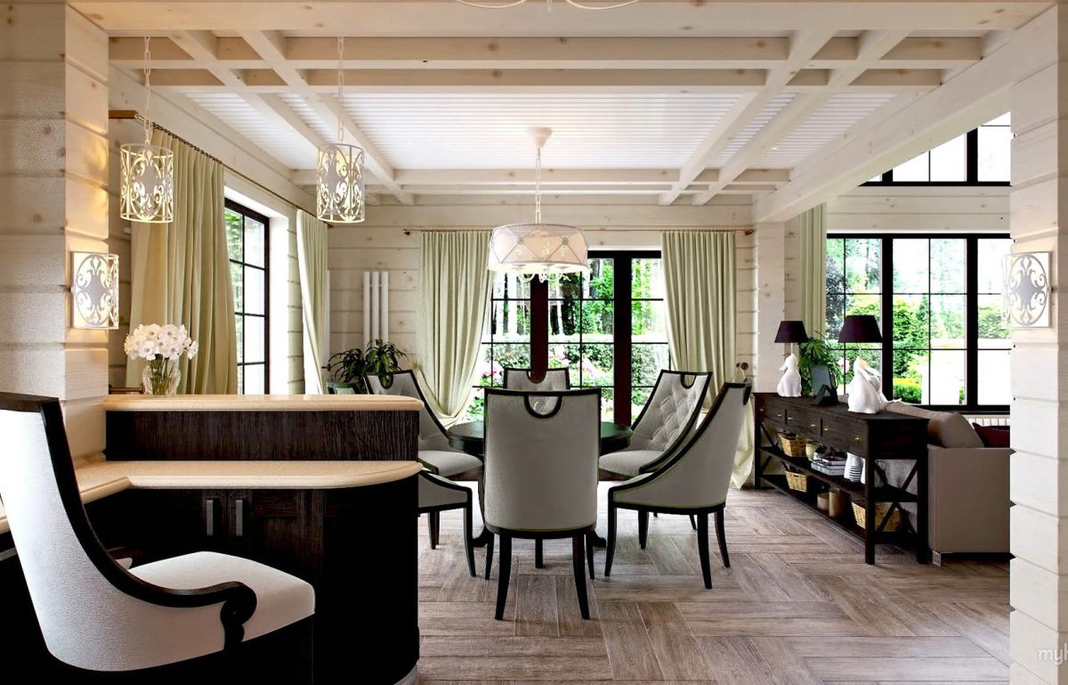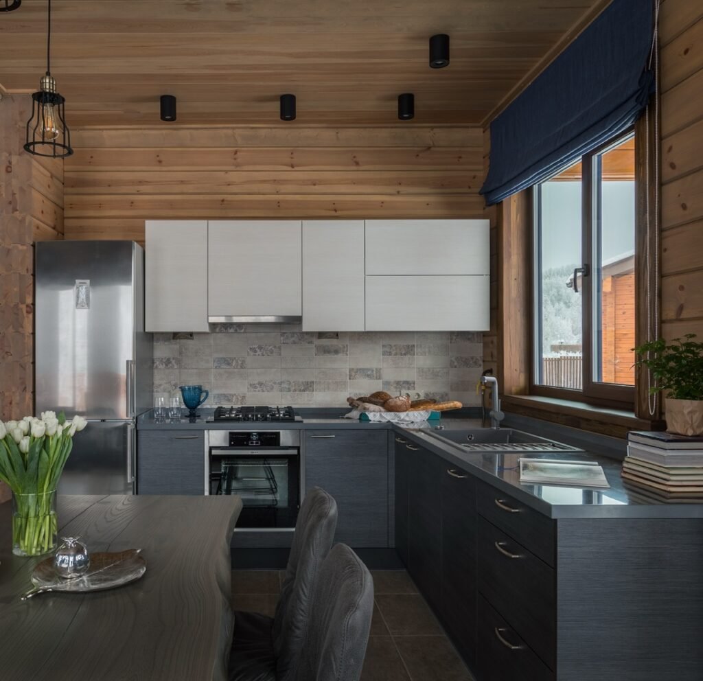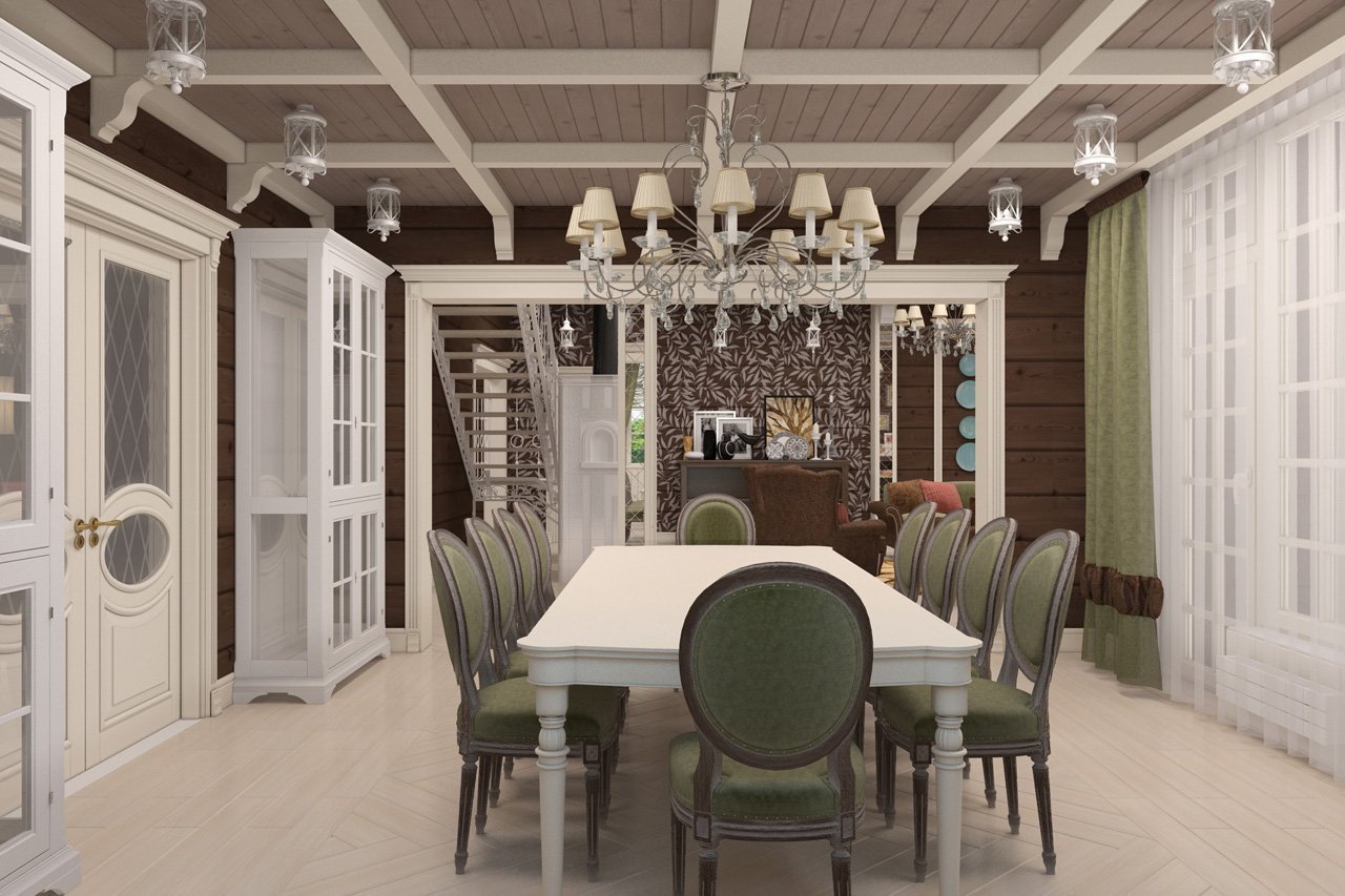 Интерьер кухни в стиле Прованс в доме из клееного бруса