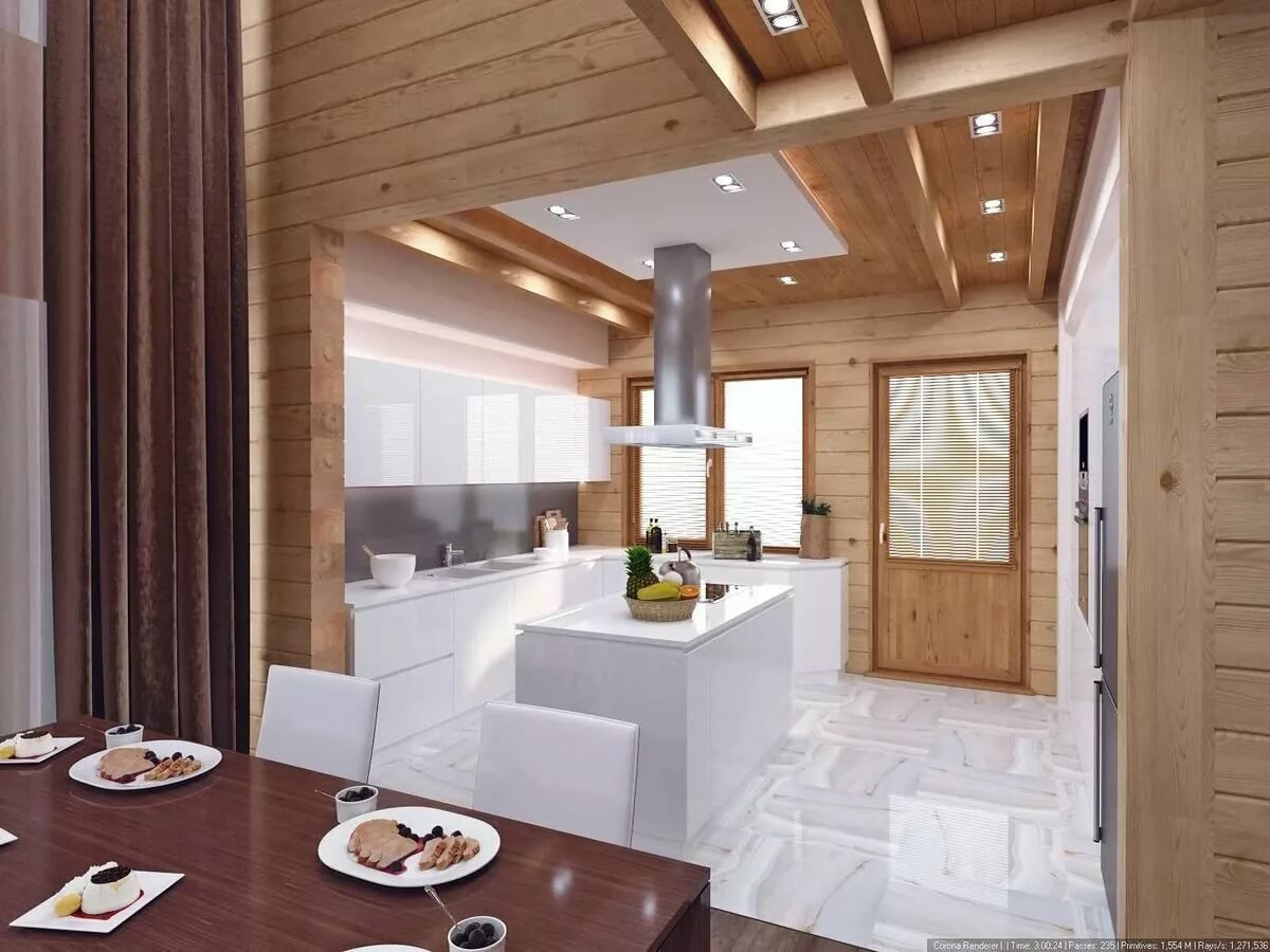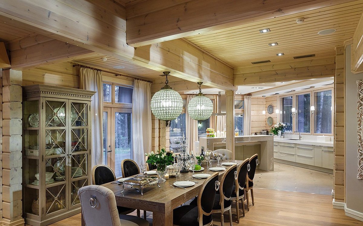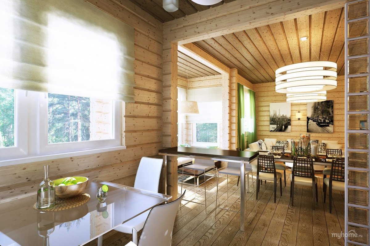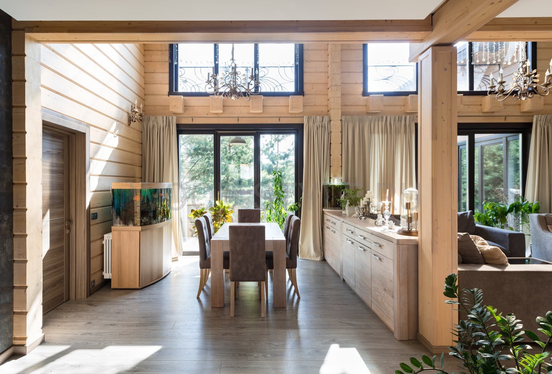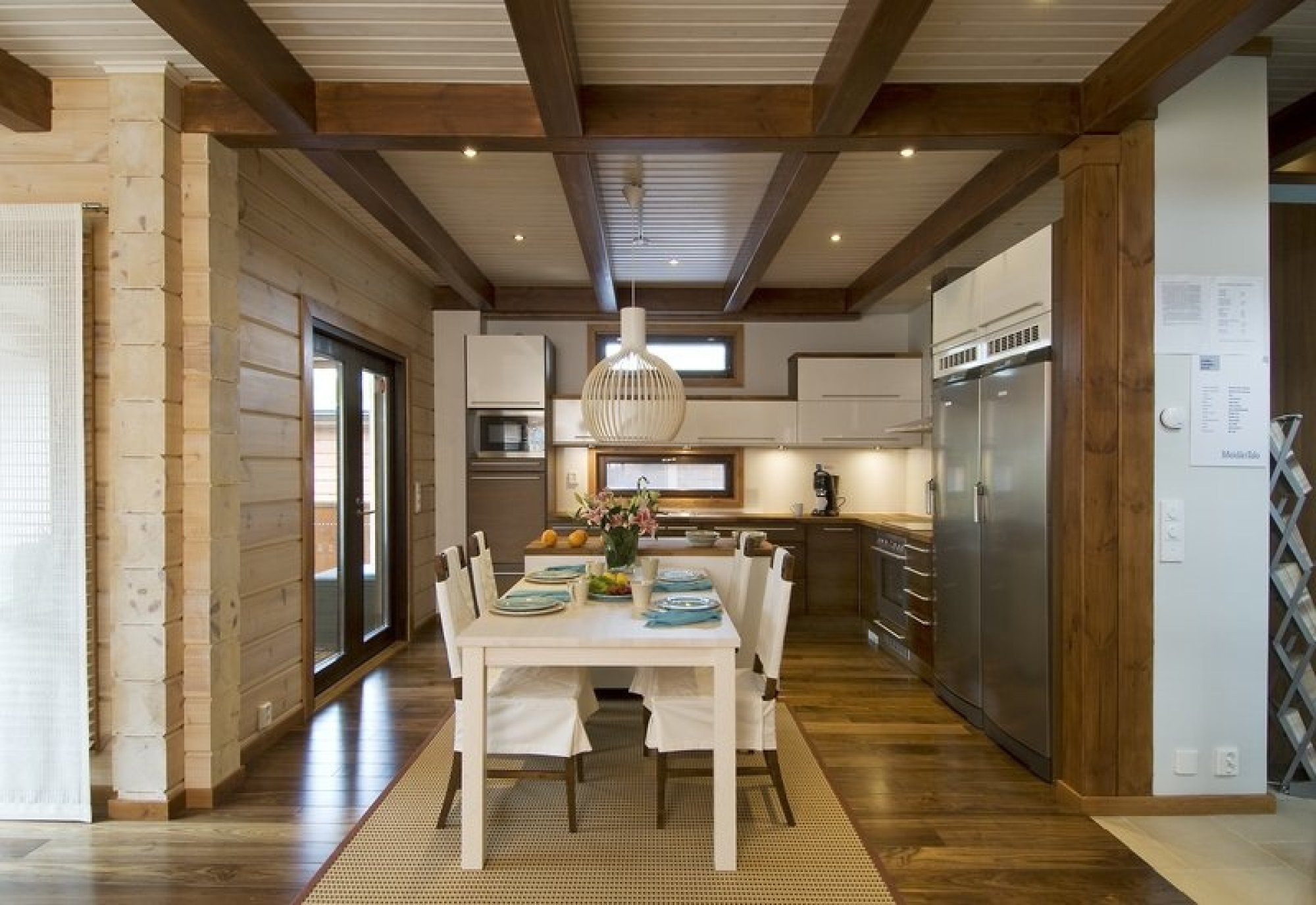 Интерьеры в домах из клееного бруса в скандинавском стиле
