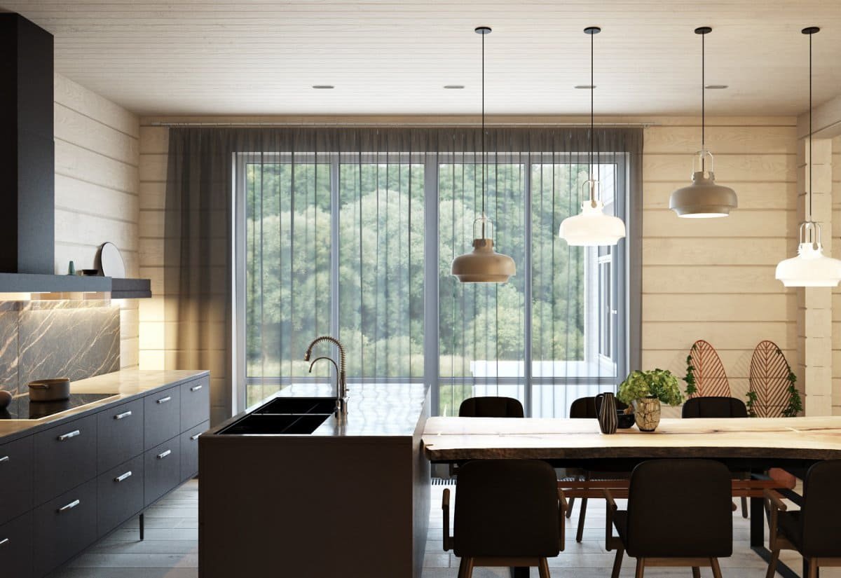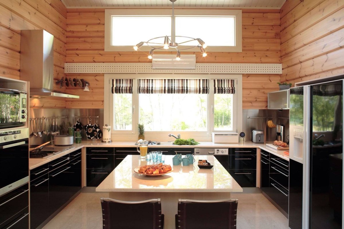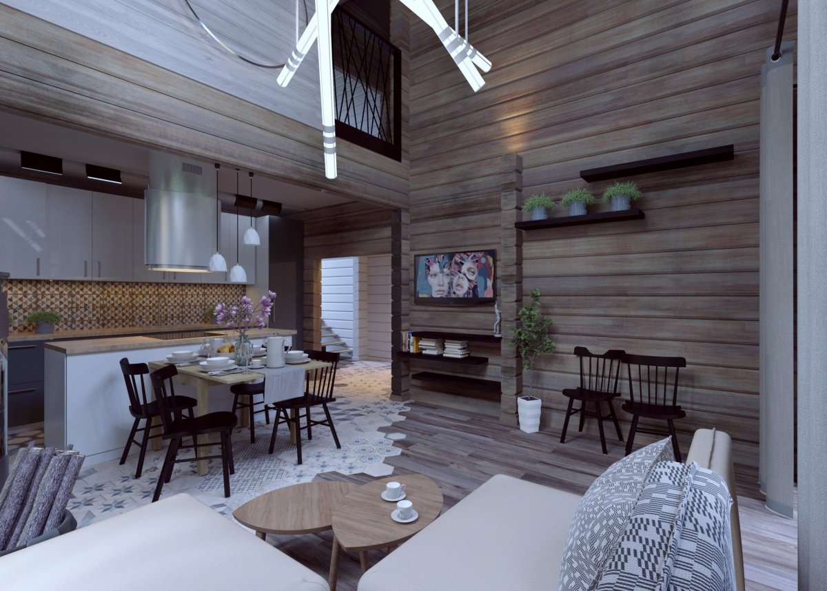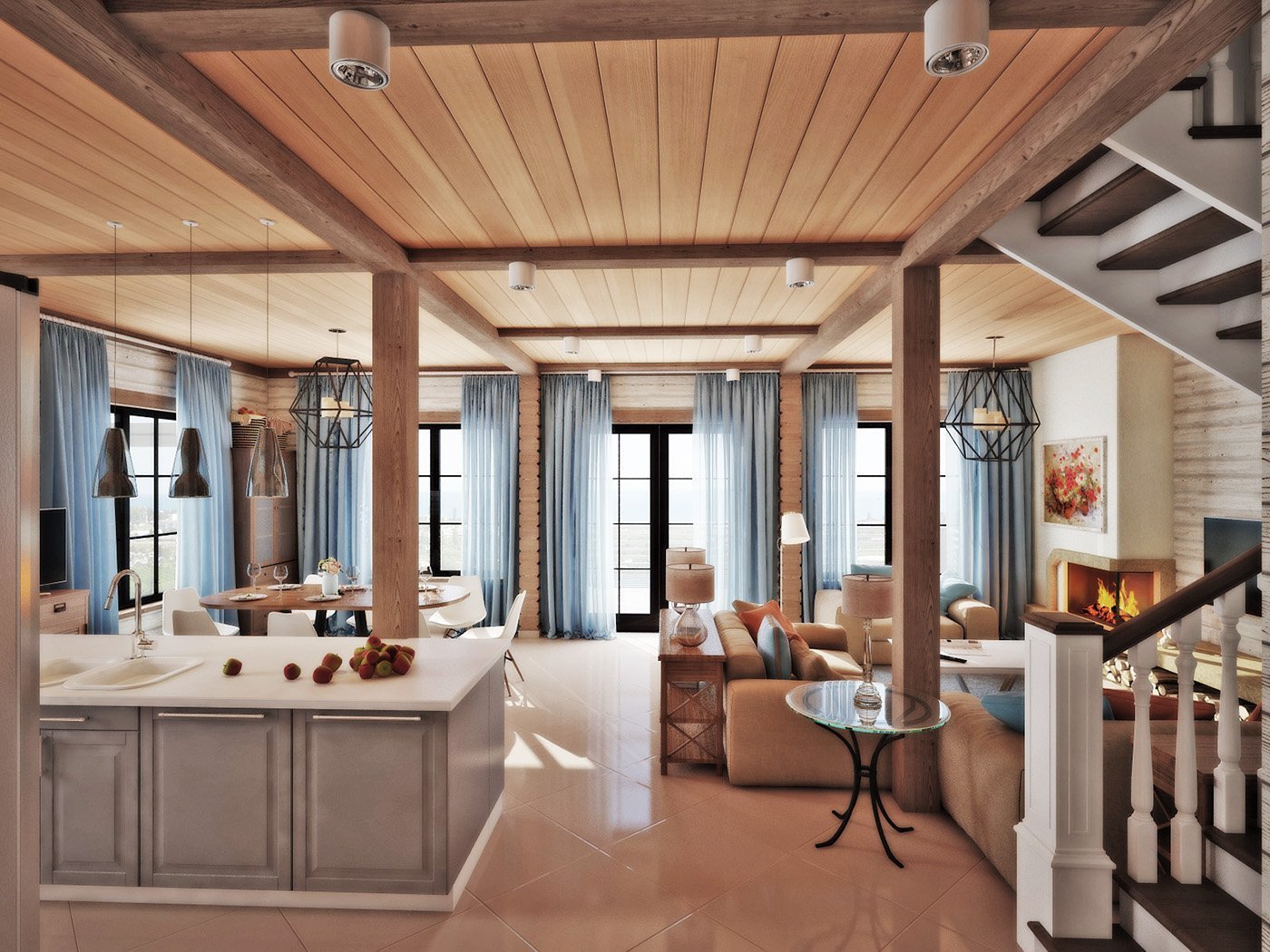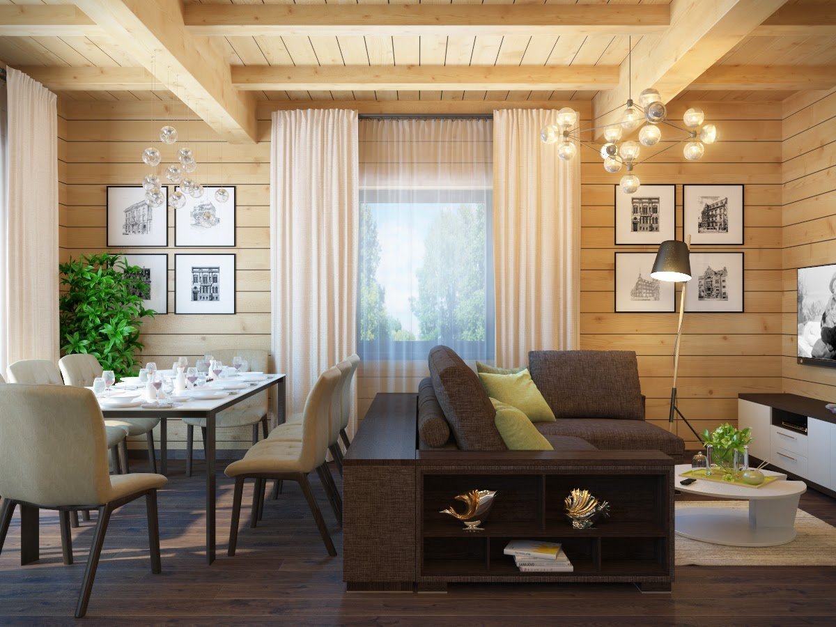 Интерьеры в домах из клееного бруса в скандинавском стиле
