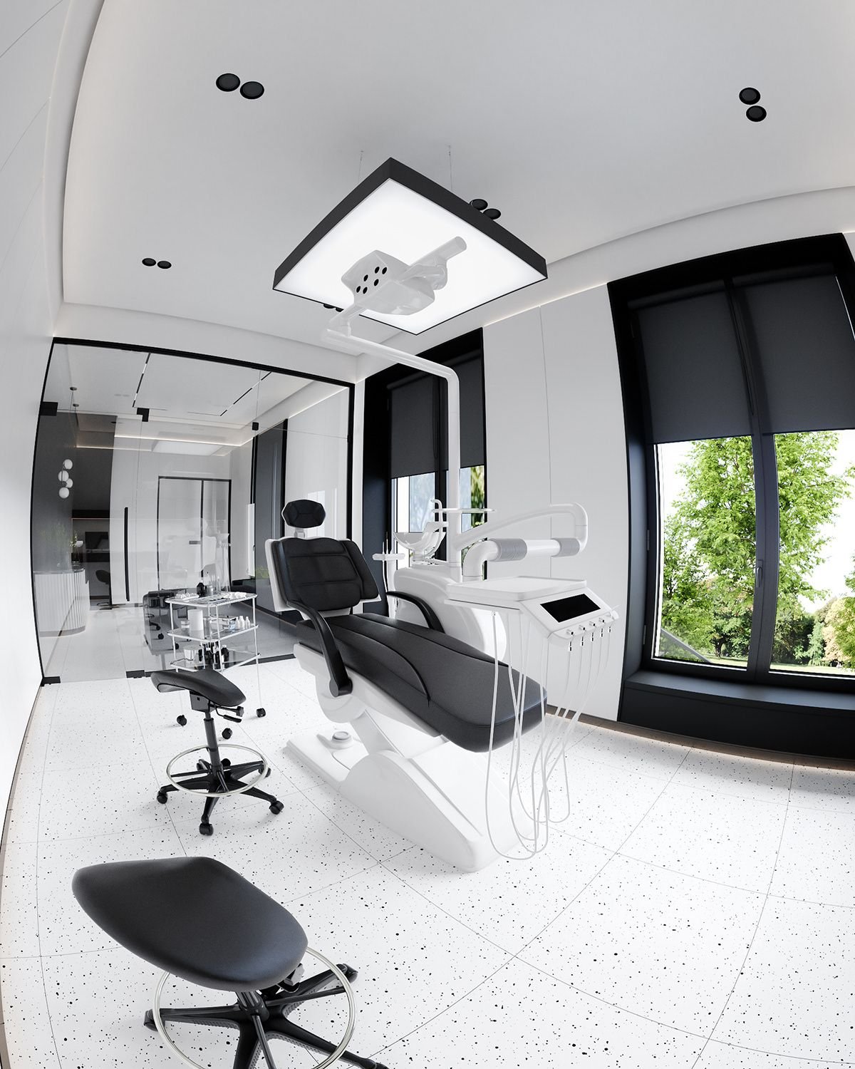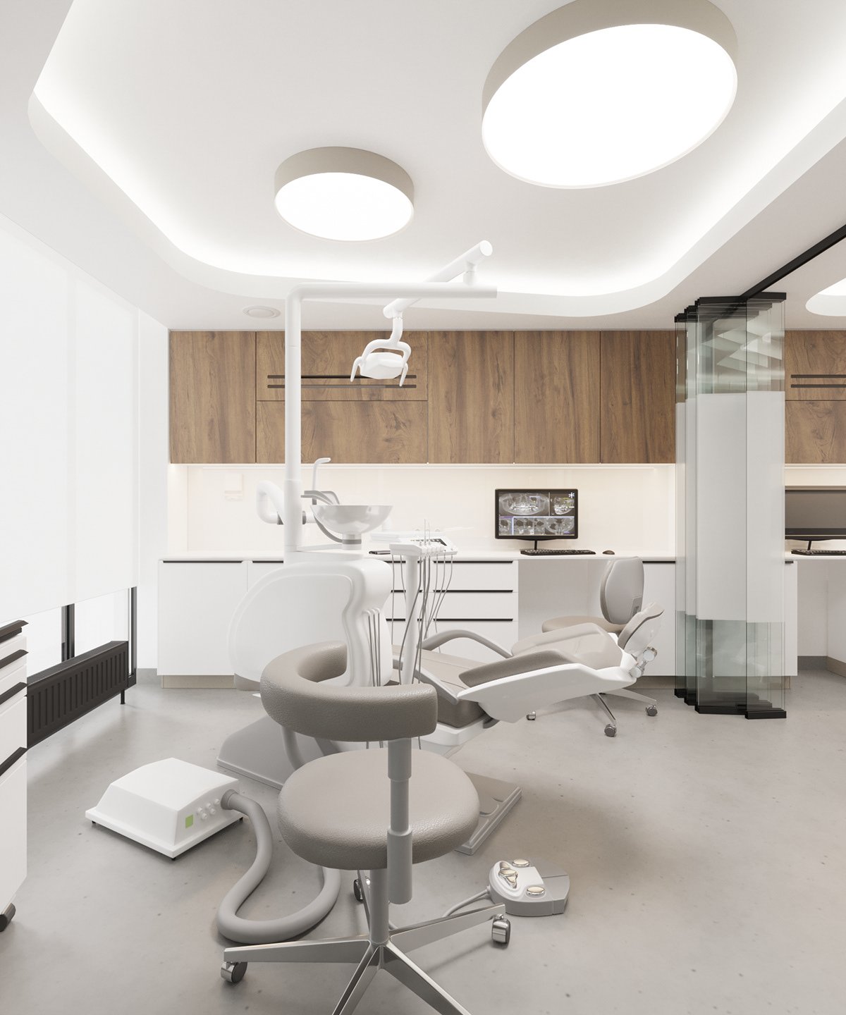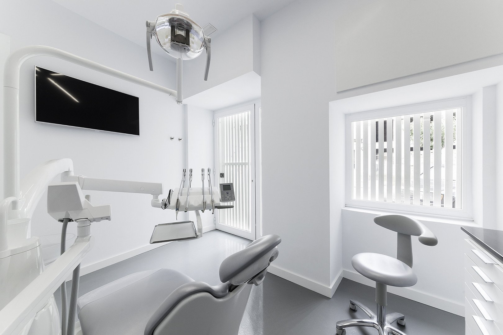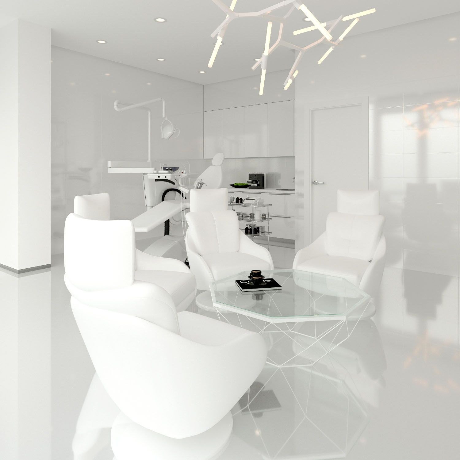 Интерьер стоматологического кабинета в белом цвете