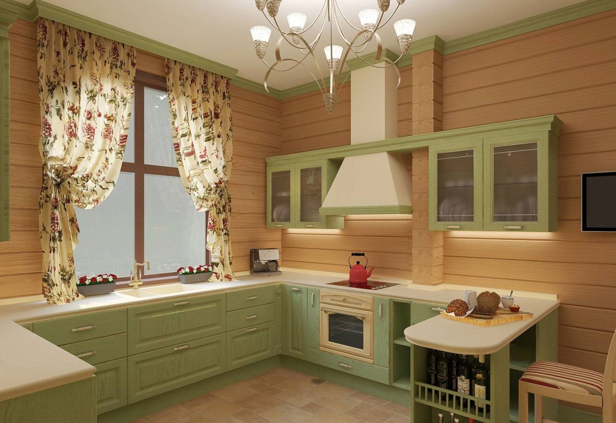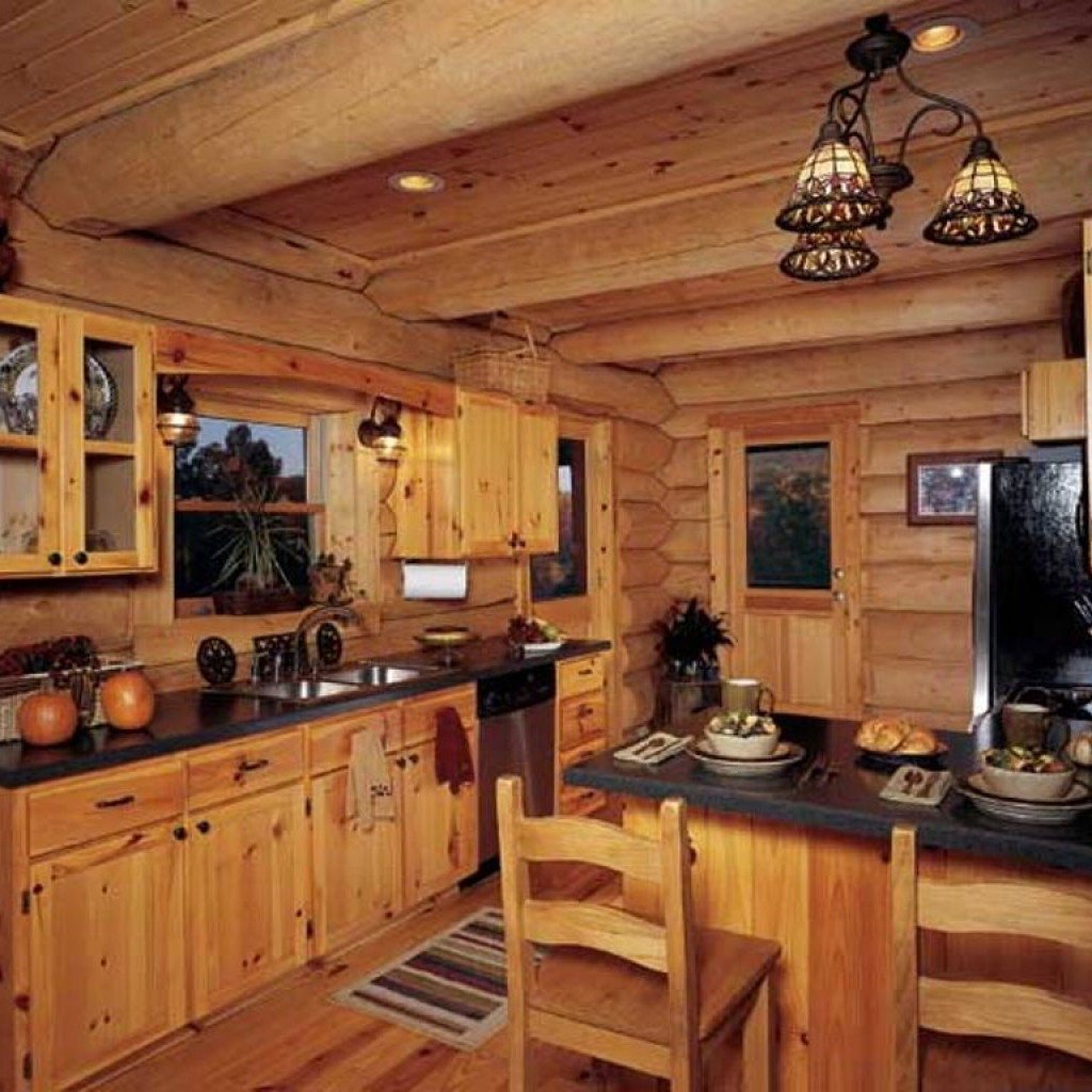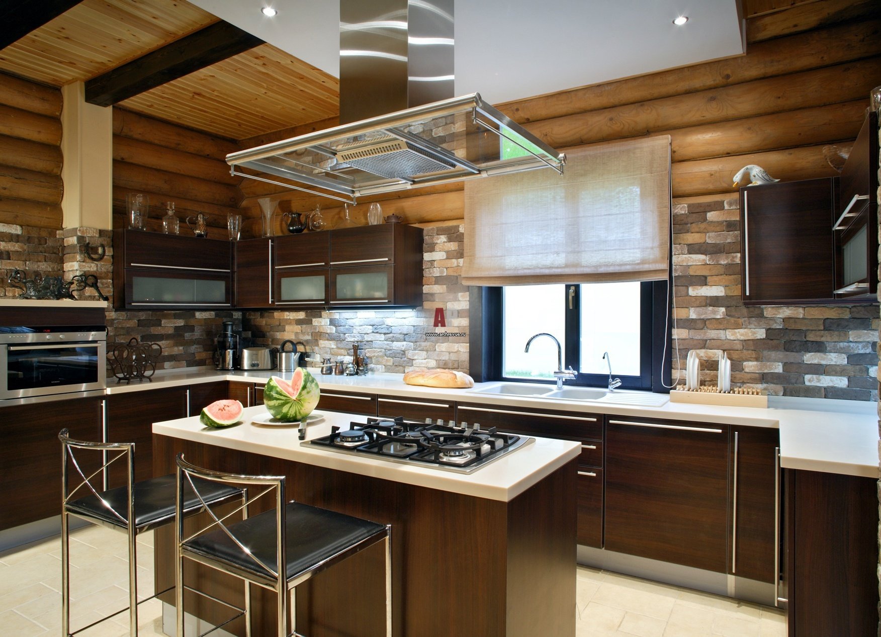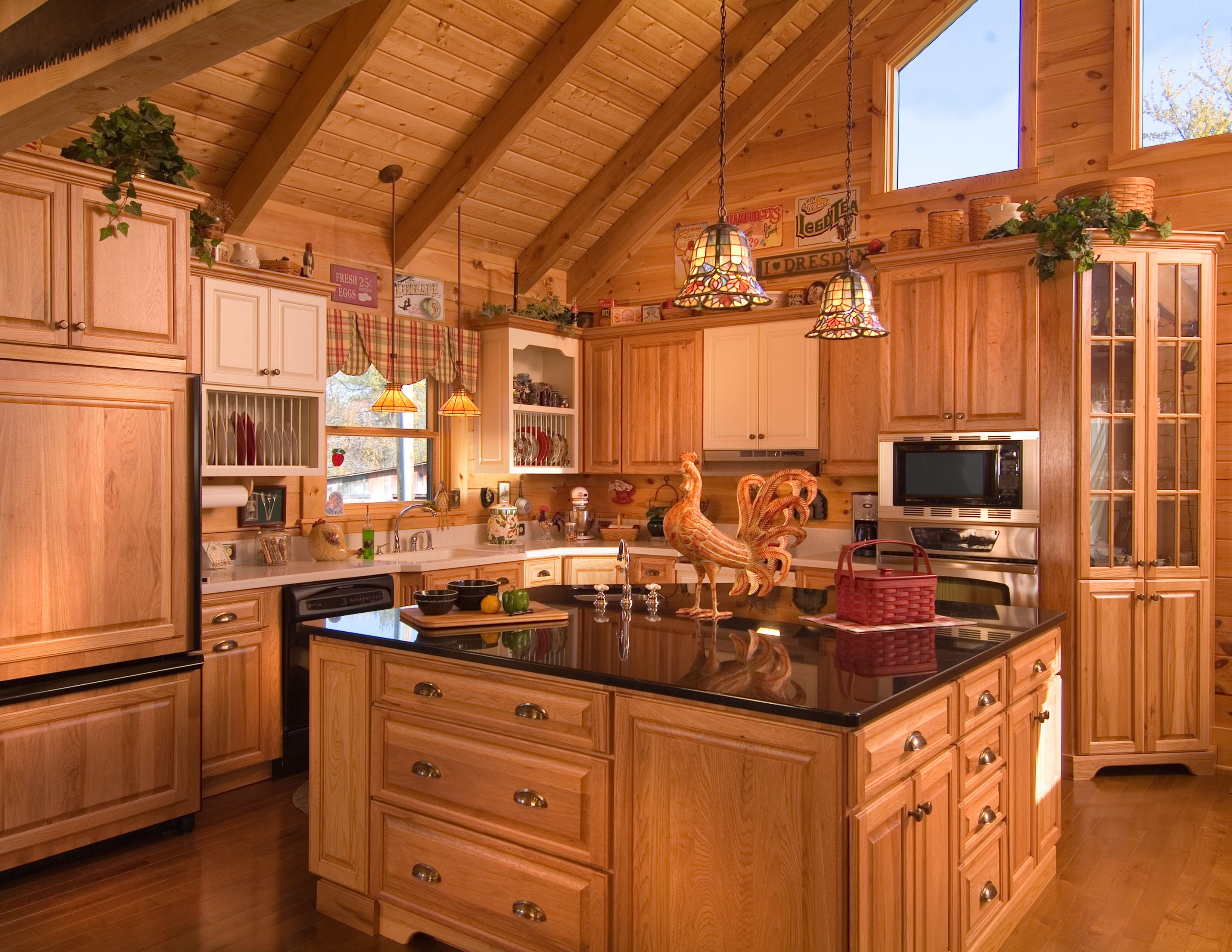 Интерьер кухни в деревянном доме из оцилиндрованного бревна