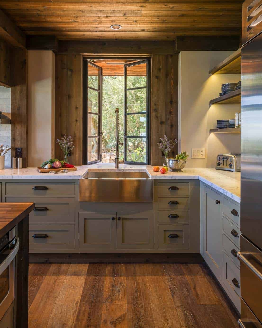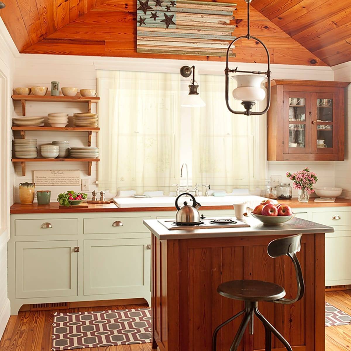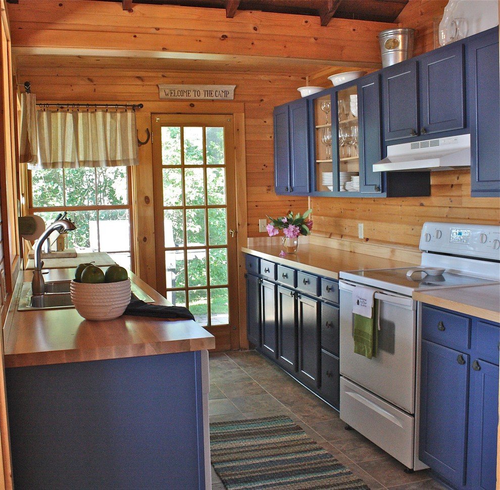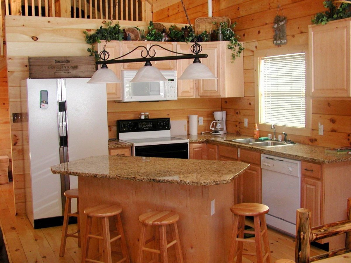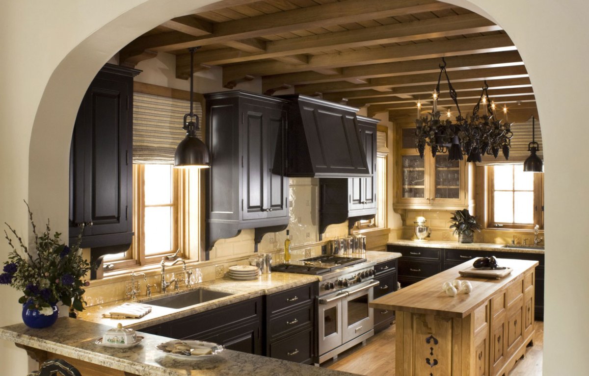 Интерьер кухни в деревянном доме из оцилиндрованного бревна