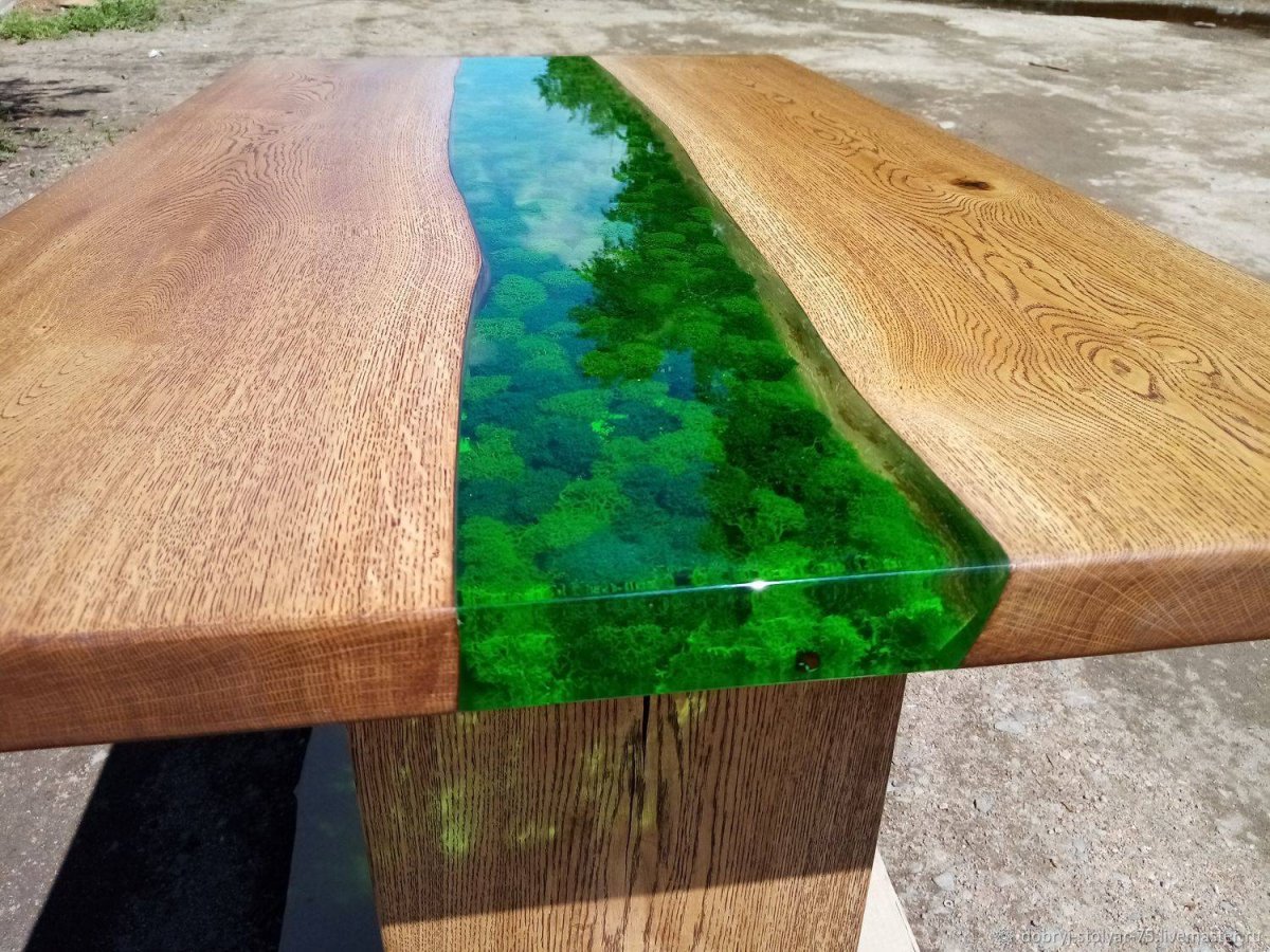 Стол с мхом и эпоксидной смолой