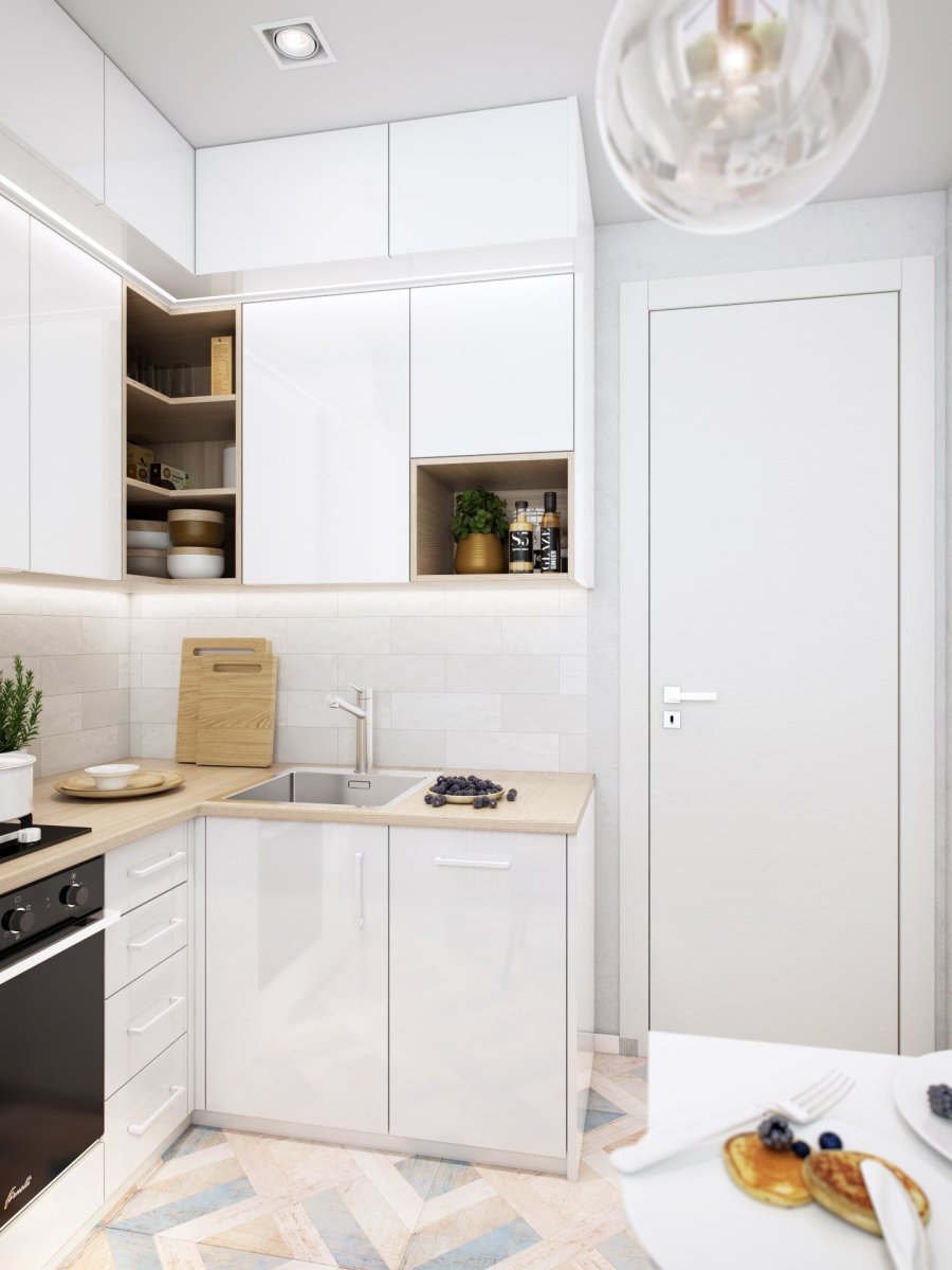 Маленькая белая угловая кухня