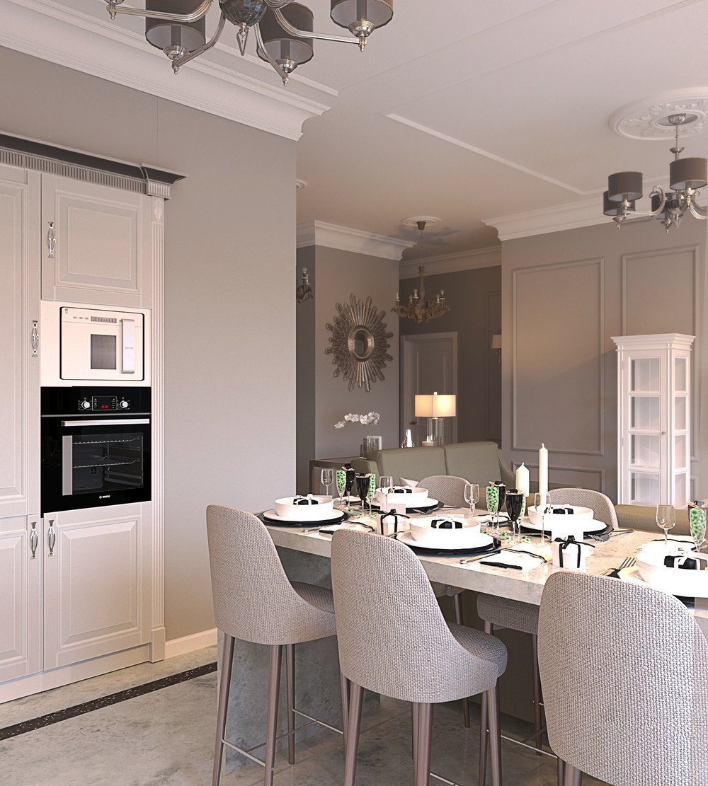 Кухня гостиная в серых тонах