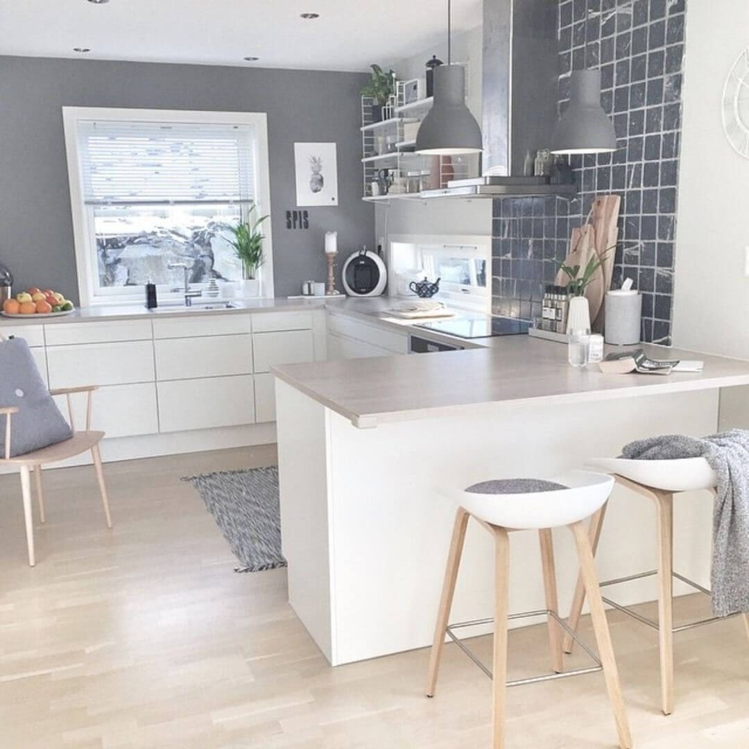 Дизайн кухни с серыми стенами
