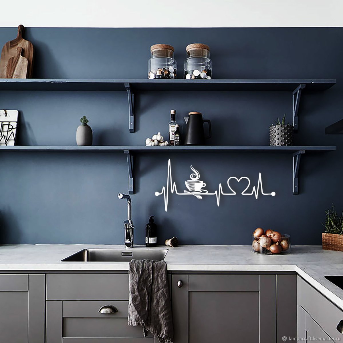 Декор серой стены на кухне