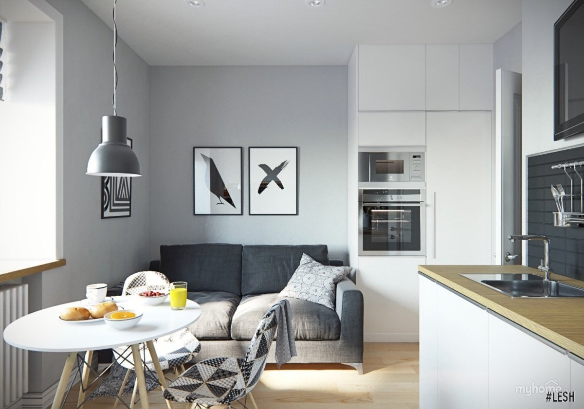 Сканди стиль кухня гостиная