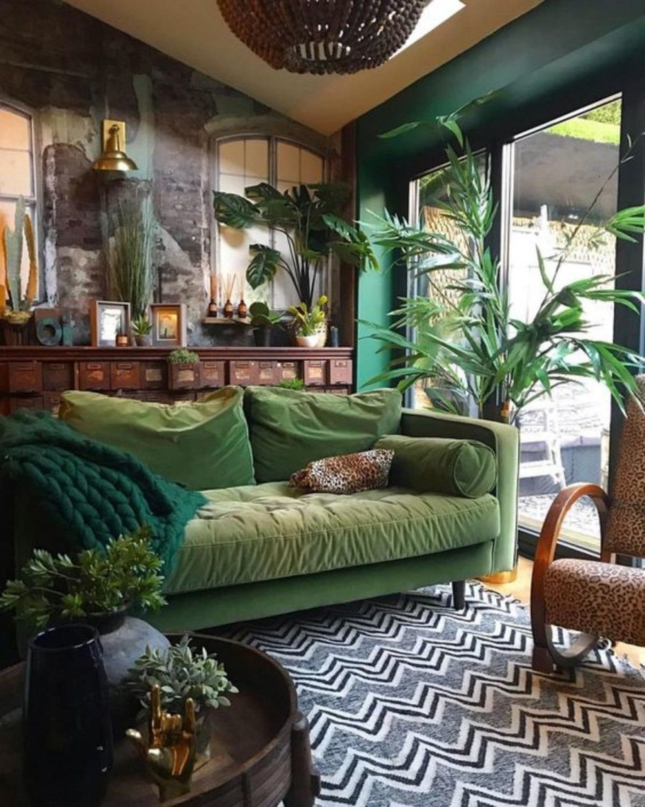 Зеленый диван в интерьере