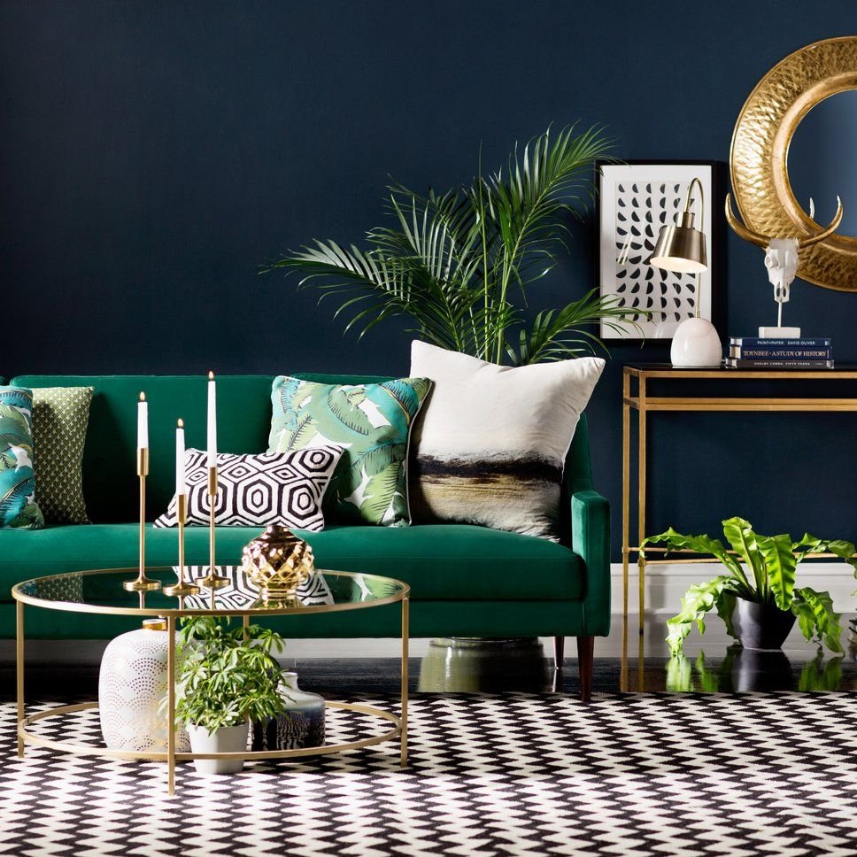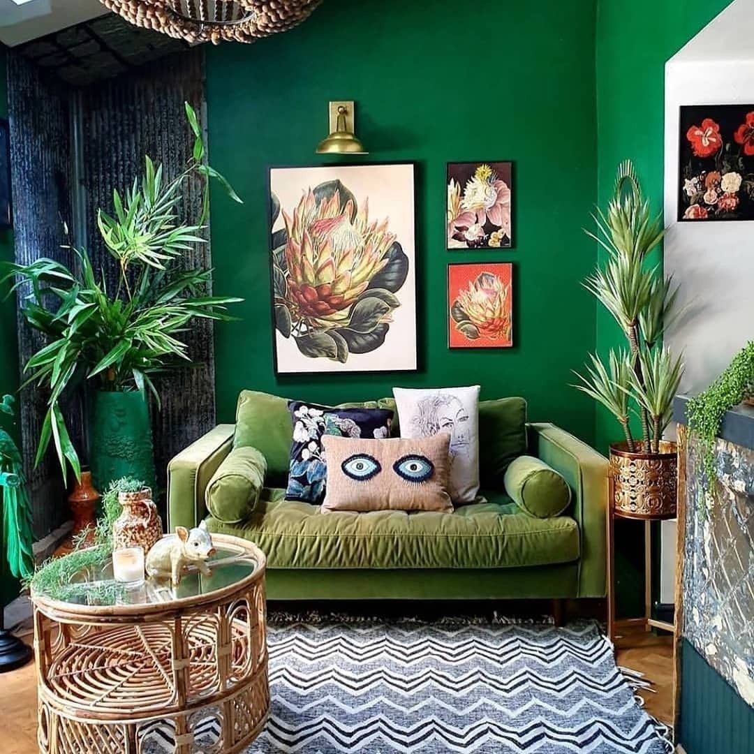 Изумрудный диван в интерьере