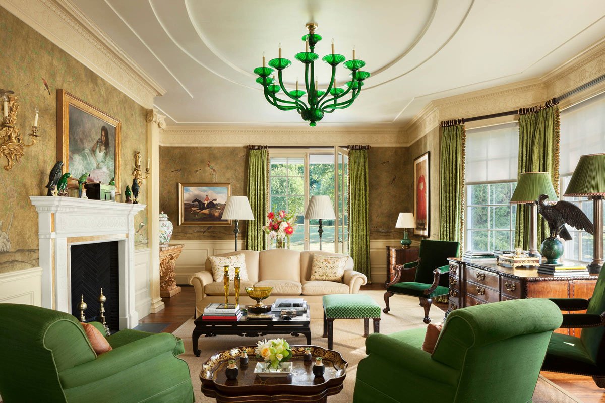 Зеленая гостиная в классическом стиле