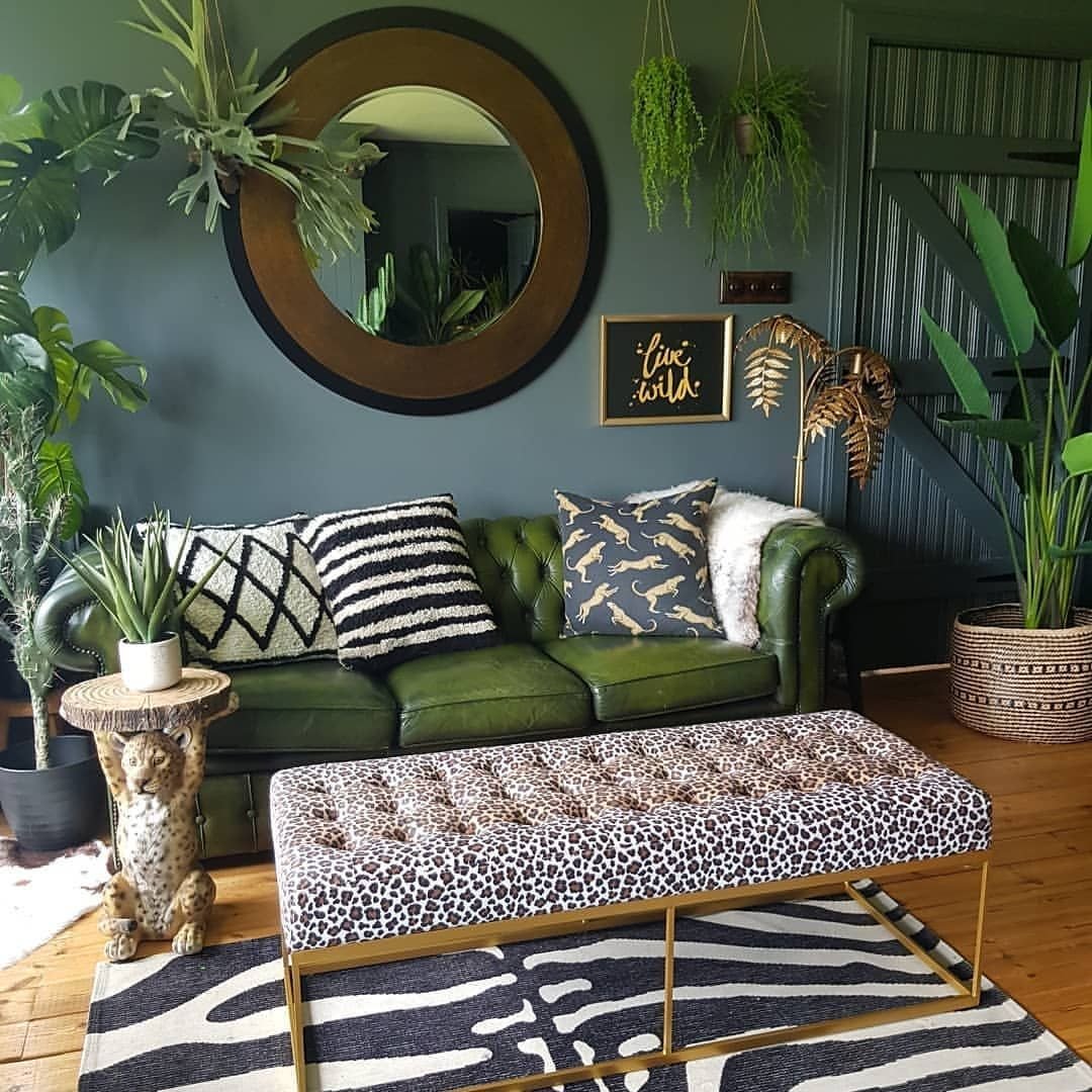 Гостиная с зеленым диваном